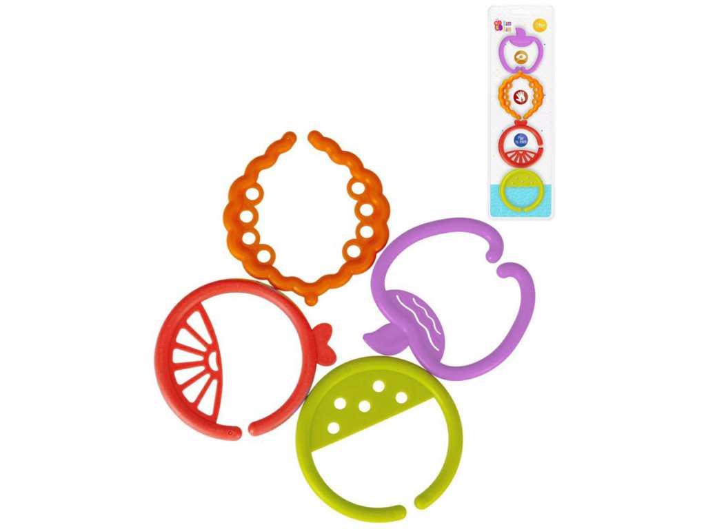 BAM BAM Baby senzorické plastové kroužky ve tvaru ovoce, set 16ks pro nejmenší děti, pro miminko. 4 barvy a 4 druhy v balení. Velikost 7cm.