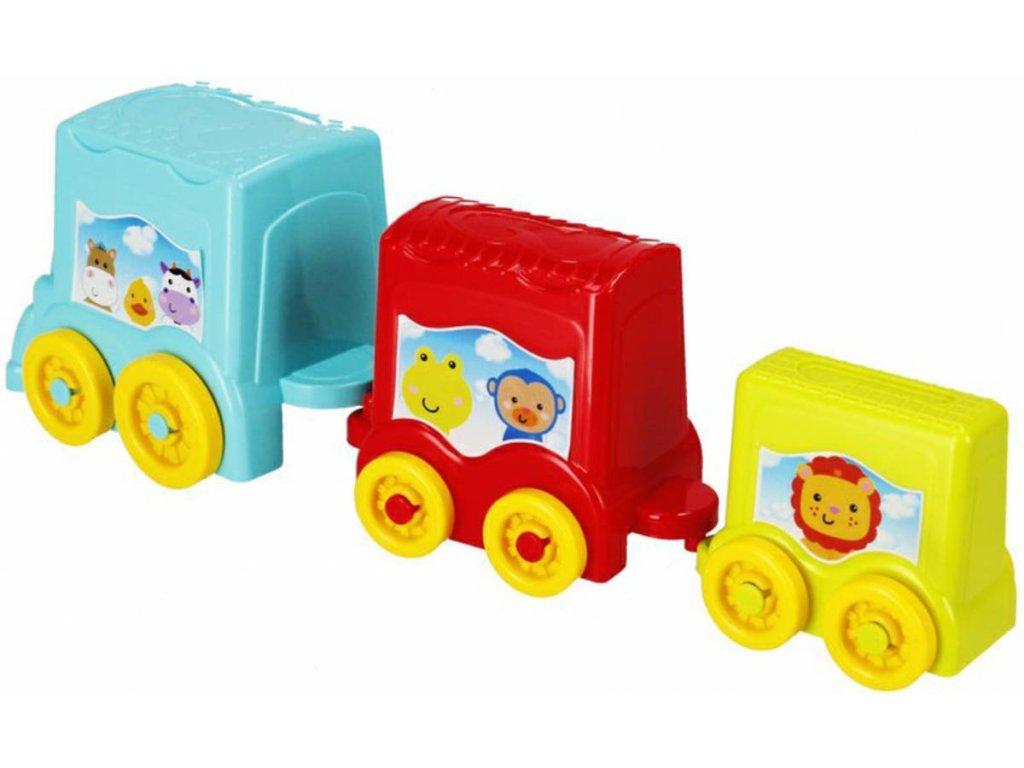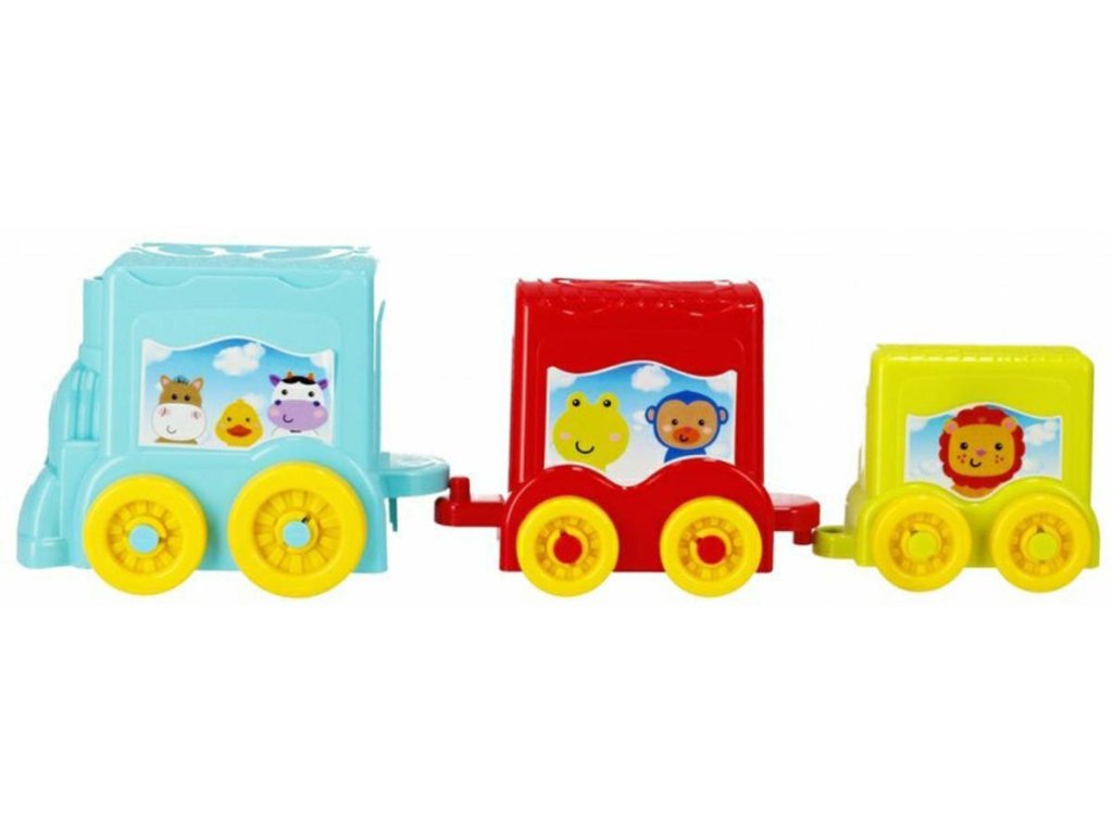 BAM BAM Baby vzdělávací vláček, mašinka o velikosti 15cm, se 2 vagonky se zvířátky, pro nejmenší děti, pro miminko.