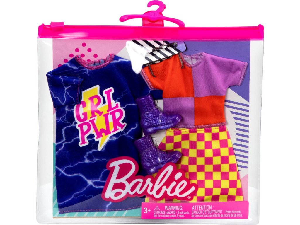 Oblékněte panenku Barbie® na každou výzvu, která ji čeká! Oblečení a doplňky pro dva kompletní vzhledy v jednom balení nabízejí při stylingu dvojnásobnou zábavu. Kousky oblečků zahrnují šaty, bundy, topy nebo spodní díly - a dva doplňky pomáhající stylizovat kompletní vzhled. Kombinujte v rámci sady a s dalšími módními doplňky z řady vytvářejte různé vzhledy a objevujte nové styly. Obsahuje dva oblečky a dva doplňky. Panenka se prodává samostatně. Univerzální střih určený pro většinu panenek Barbie®. Každý módní balíček se prodává samostatně, dle aktuální nabídky. Barvy a vzhled výrobku se mohou lišit.