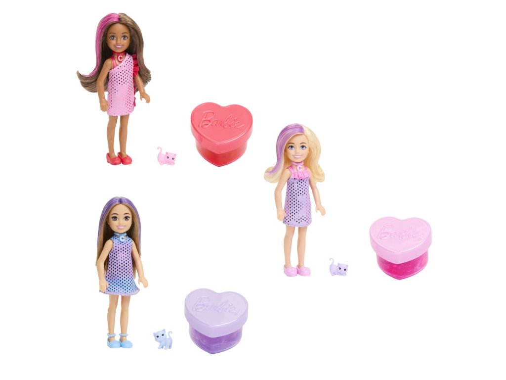 Se šesti překvapeními v jednom balení přináší panenky Barbie Chelsea zábavné rozbalování a party atmosféru plnou třpytu! Oslava začíná už při otevírání balení inspirovaného dárkovou krabičkou – uvnitř najdete malou panenku Chelsea. K dispozici jsou tři různé panenky, každá s originálním účesem a jedinečnými šaty na party. Kterou rozbalíte právě vy? V balení najdete i kelímek inspirovaný balzámem na rty a malou lžičku. Po otevření kelímku na vás čeká želé Slime, pár bot, náhrdelník a roztomilý zvířecí kamarád! Ještě větší wow efekt přinese barevná proměna vlasů Chelsea pomocí vody. Děti si budou chtít nasbírat všechny! Každá panenka se prodává samostatně podle dostupnosti. Panenky neumí samostatně stát. Barvy a vzhled výrobku se mohou lišit.