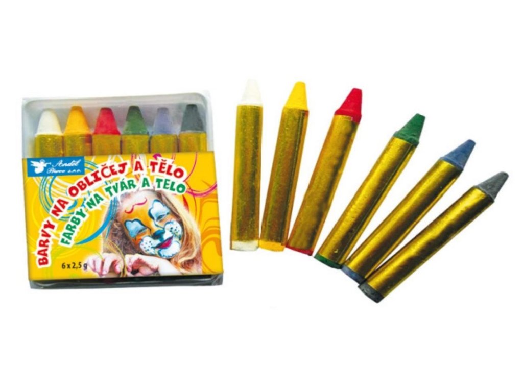 Barvy na obličej a tělo 6ks v sáčku 6x7cm karneval