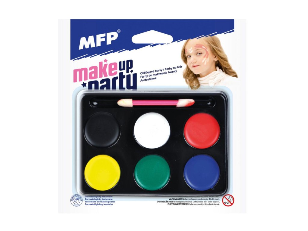 Barvy na obličej se štětečkem 6 barev na paletce na kartě 15,5x16cm