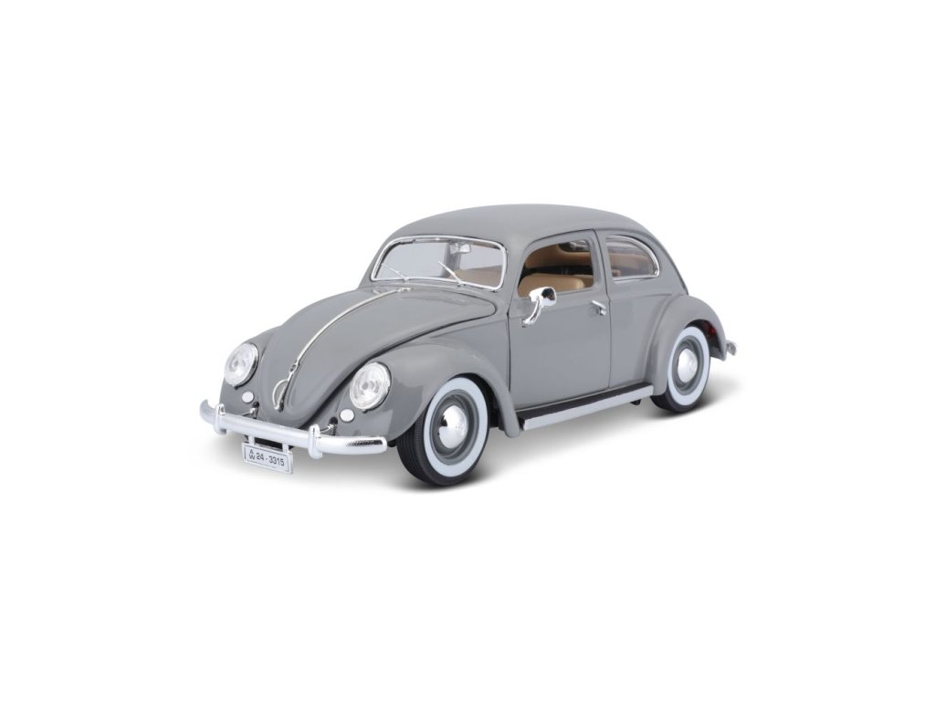 Špičkový model auta Bburago Volkswagen Käfer Beetle rok výroby 1955 v měřítku 1:18. Kolekce Gold. Model má otevírací dveře a kapoty. Volant je funkční. Věk 3+.