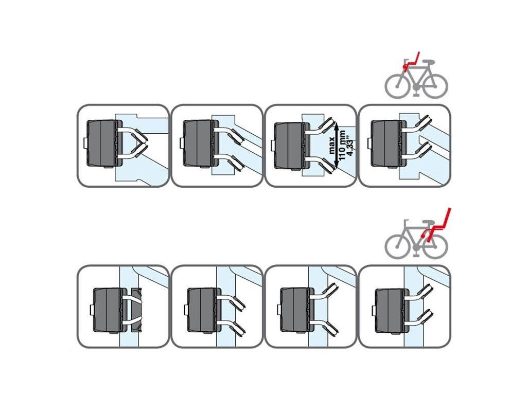 připevnění k zadní části rámu pod sedlo - systém B-FIX vhodný pro trubky o průměru 28 - 45 mm