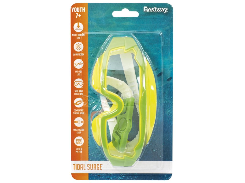 Plavecké brýle Bestway® Tidal Surge™ jsou ideální pro mladé vodní nadšence. Umožňují bezpečné a jasné objevování podvodního světa. Technické parametry: Tónované nárazuvzdorné polykarbonátové čočky s širokým zorným polem UV ochrana Protizamlžovací úprava Nastavitelný silikonový pásek s rychloupínáním 100% bez latexu a PVC 3 různé designy (nelze vybrat konkrétní) Hlavní výhody: Ochrana očí před škodlivým UV zářením Speciální protizamlžovací povlak pro jasný výhled Pohodlné nošení bez otlaků Snadné nasazování a sundávání díky rychloupínání Nastavitelná velikost pro perfektní usazení Vhodné pro bazén, moře i domácí použití Bezpečnostní upozornění: ⚠️ Děti by měly být ve vodě nebo v její blízkosti vždy pod dohledem dospělé osoby. Dodáváno v blistrovém balení.