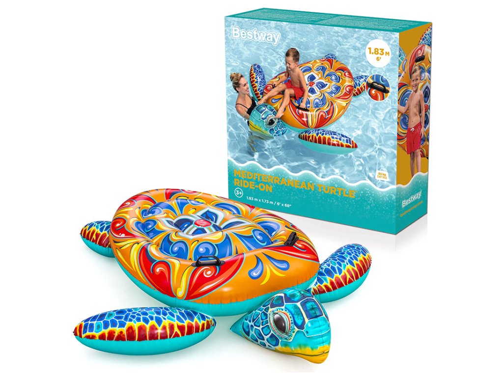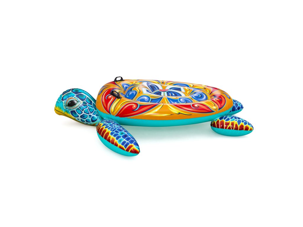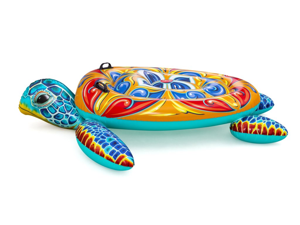 Velká nafukovací želva v středomořském majolika designu. Ideální pro vodní zábavu pro děti i dospělé. Technické parametry: Rozměry nafouknutého: 186 x 168 x 42 cm Rozměry vyfouknutého: 183 x 173 cm Maximální nosnost: 85 kg Věková kategorie: 3+ let Pro děti i dospělé Konstrukce: Odolné PVC 2 vzduchové komory Bezpečnostní ventily Robustní držadla Středomořský majolika design Vlastnosti: Prostorná ležící plocha Stabilní konstrukce Snadné nafukování a vyfukování Lehká a přenosná Kompaktní při skladování Využití: Bazén Pláž Koupaliště Vodní radovánky Bezpečnostní upozornění: ⚠️ Používejte pouze v mělké vodě ⚠️ Nutný dohled dospělé osoby ⚠️ Není záchrannou pomůckou ⚠️ Nepřekračujte maximální nosnost Součástí balení je opravná záplata. Unikátní design inspirovaný středomořskou majolikou přinese atmosféru dovolené do vašeho bazénu.