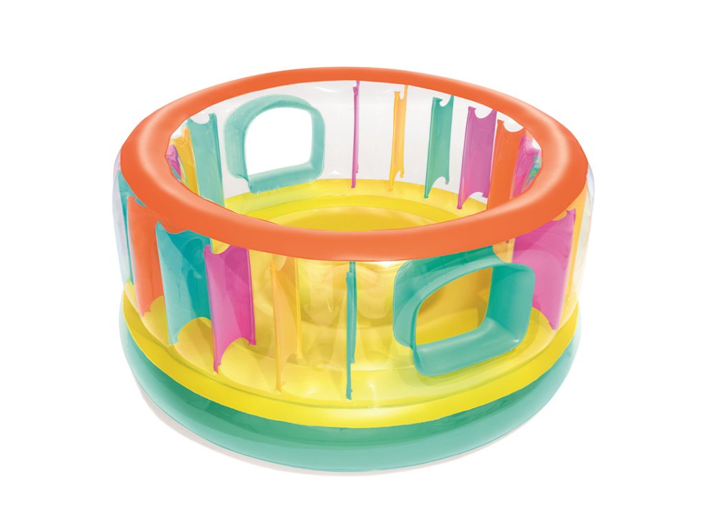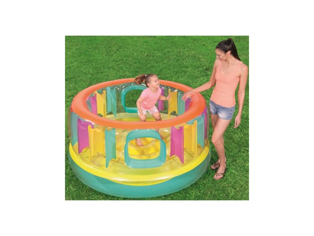 Nafukovací trampolína Bestway pro pohybovou aktivitu dětí. Nafukovací hračky a potřeby Bestway splňují nejpřísnější bezpečnostní normy na zpracování a použité materiály. Trampolínu je možné použít uvnitř i venku. Při venkovním použití dbejte na to, aby plocha, kam skákací hrad umístíte, byla rovná, bez ostrých předmětů - ideálně použijte geotextilní podložku. Bezpečnostní ventily Odolný odzkoušený vinyl Vyšší bezpečnost díky pevným barevným stěnám Nosnost: 85 kg Průměr 180cm Výška: 86cm