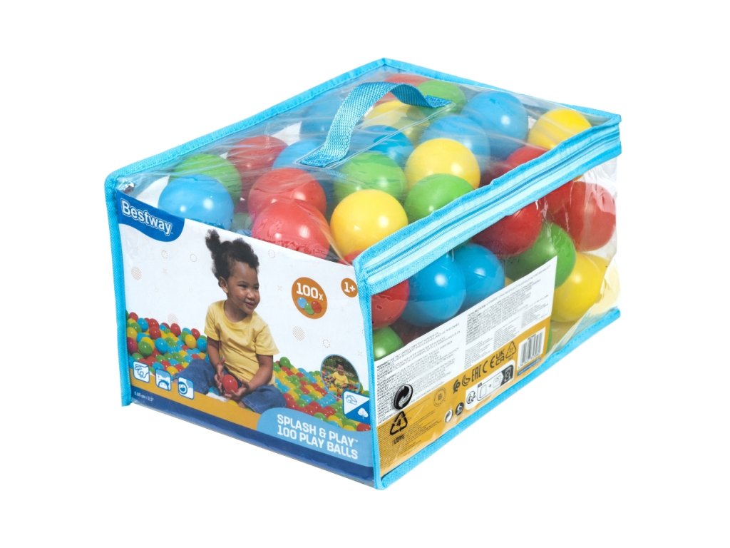 Míče Bestway Splash & Play 100 Play Balls se dodávají ve 4 pestrobarevných barvách pro zábavné učení a hraní! Tento produkt je základním vybavením herny. Skvělé samy o sobě jsou hrací míčky také skvělým doplňkem mnoha dalších produktů Bestway. Tyto barevné míčky lze použít v kuličkových jamkách, v bazénech s vodou nebo bez vody, ve vaně při koupeli nebo jen tak na podlaze k třídění, válení a hraní. Jsou zábavným způsobem, jak se malé děti učí chytat a házet, zlepšují koordinaci ruka-oko a další motorické dovednosti, když se plazí, chodí nebo běhají za míčky. Jednoduché, fascinující a zábavné, s těmito hracími míčky bude vaše ratolest v pohybu. Míčky Bestway Splash & Play 100 Play, vyrobené ze vzduchem plněného odolného materiálu a zakončené hladkým švem, jsou lehké a přenosné a navíc jsou pro děti zábavným způsobem, jak se učit barvy!