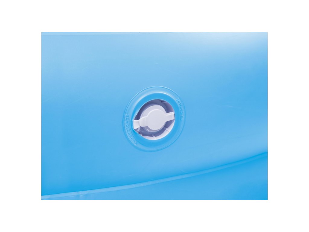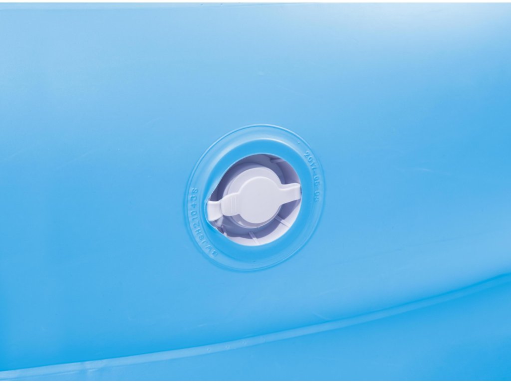 - Dva blokující se ventily pro rychlé vypouštění - Pevný a předem otestovaný vinyl - 2 stejné prstence - Velmi silné postranní stěny - Záplata pro vysoké zatížení - Navržený objem vody: 544 litrů (144 gal.) - Voda se z bazénu vypouští snadno použitelným ventilem! - **Obsah:** Jeden bazén, záplata pro vysoké zatížení"