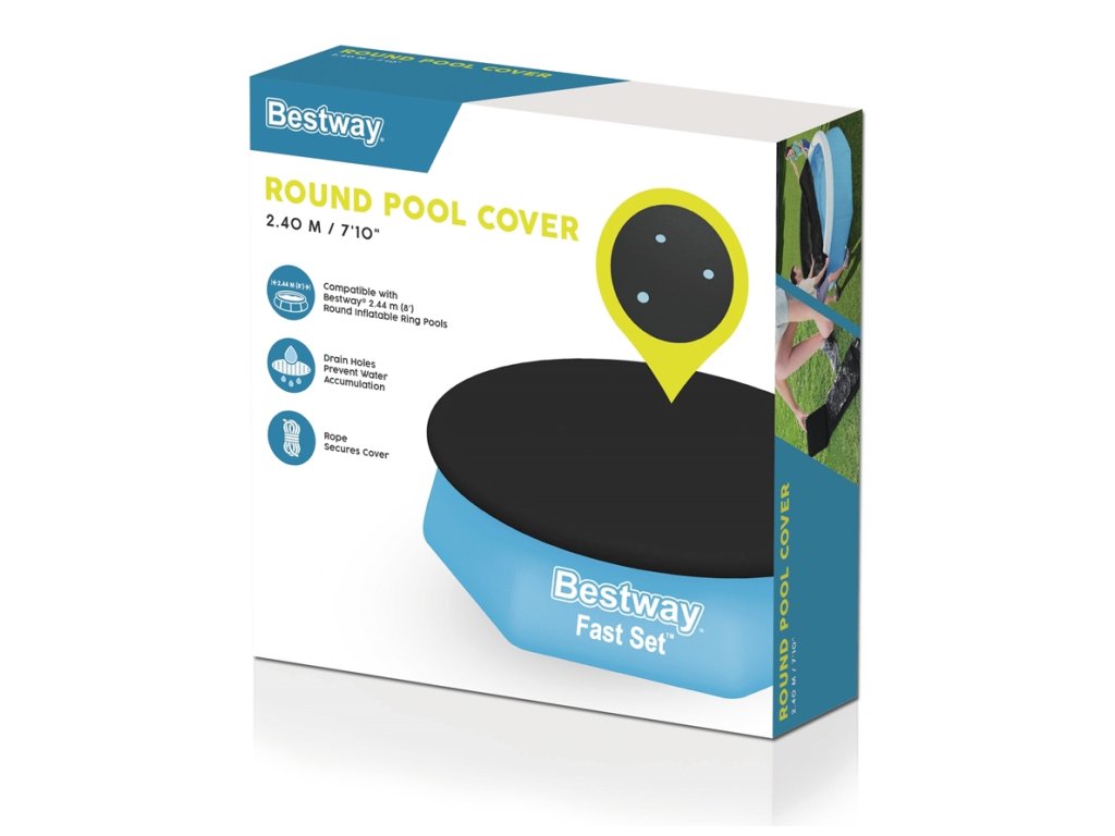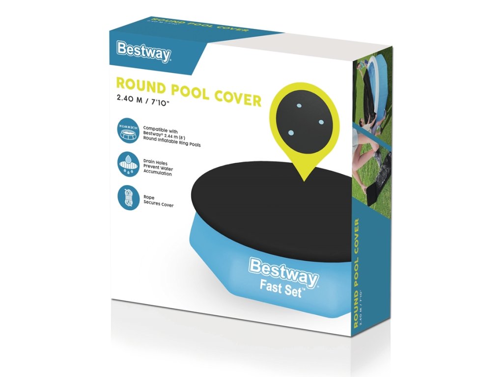 Univerzální krycí plachta je vhodná pro všechny bazény o průměru 244 cm. Plachta je vyrobena z hladkého a pružného polyetylenu, který tlumí nárazy a minimalizuje riziko perforace. Tato plachta má velmi dlouhou životnost a je doporučena i pro zimní použití. Jedná se o produkt s vynikající odolností proti mechanickému poškození a povětrnostním vlivům. Plachta má drenážní otvory pro odtok přebytečné vody. Díky gumě po obvodu plachta dobře drží a neklouže. Vlastnosti: - Provazy pro uchycení - Materiál: Robustní PVC - Barva: Černá - Obsahuje upevňovací lana - Drenážní otvory zabraňují hromadění vody na podložce