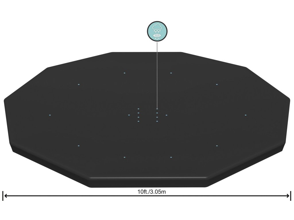 Zastřešení bazénu Bestway je zastřešení bazénu vyrobené z odolného materiálu, který zabrání tomu, aby nečistoty skončily ve vodě. Obsahuje stahovací šňůry a odtokové otvory, aby se zabránilo hromadění vody. Vhodné pro bazény 3,05 m Steel Pro a 3,05 m bazény Steel Pro MAX. Hmotnost produktu 1,78 kg Rozměry produktu 305 x 305 cm