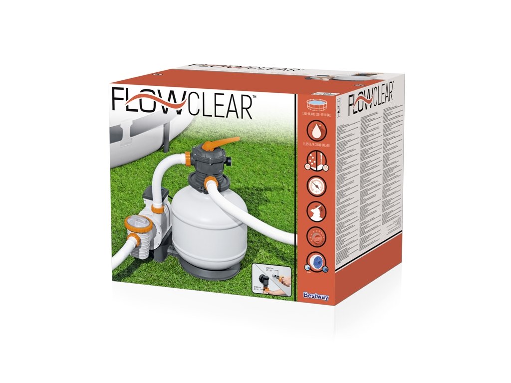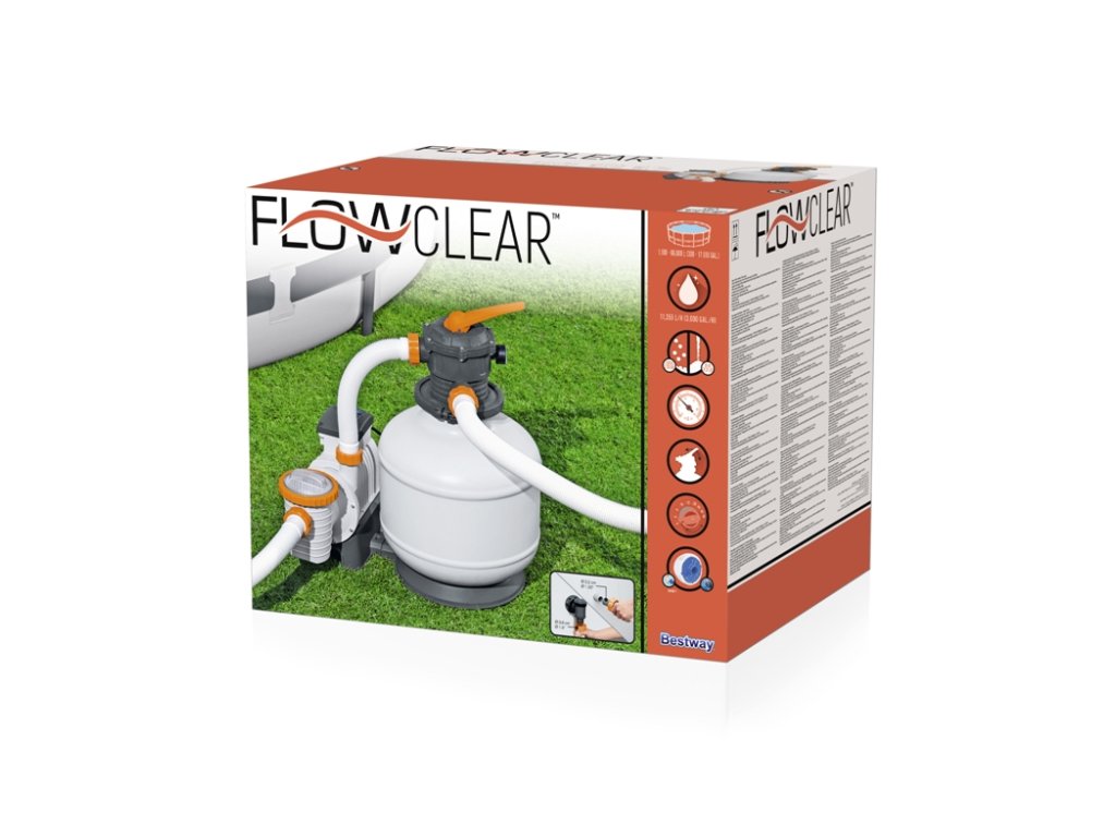 Pískové filtrační čerpadlo Bestway Flowclear 11 355 L je velmi účinný a ekologický způsob, jak udržet vodu ve vašem nadzemním bazénu čistou. Jedná se o cenově výhodnější řešení, protože čerpadlo používá křemičitý písek místo tradiční filtrační patrony. Zatímco tyto patrony je nutné každé dva týdny vyměnit, křemičitý písek vydrží až tři roky. Písek zachycuje nečistoty a nečistoty, ale filtrační koš funguje jako předfiltr, který zadržuje větší prvky, což umožňuje čerpadlu vydržet déle. Filtrační čerpadlo je také dodáváno s difuzérem ChemConnect, který udržuje čistou a zdravou vodu a zajišťuje stabilní hladinu chlóru rovnoměrně v bazénu. Tento produkt je dodáván předem smontovaný a je vhodný pro většinu nadzemních bazénů od 1100 do 66 600 litrů, protože je dodáván s adaptérem pro bazénové ventily s OD 1,5". Písek není součástí dodávky. Doporučený písek je křemičitý písek č. 20, 0,45-0,85 mm, asi 36 kg. Filtrační čerpadlo také funguje skvěle s filtračními kuličkami Bestway Polysphere. Výkon čerpadla 11 355 l/h Odolná a korozi odolná filtrační nádrž Difuzér ChemConnect distribuuje stabilní hladinu chlóru, aby byla zajištěna dobrá chemická rovnováha Vhodné pro většinu nadzemních bazénů, vhodné pro bazény od 1100 do 66 600L Písek není součástí dodávky. Požadovaná velikost: #20 Křemičitý písek, 0,45-0,85 mm, Přibližně 36 kg. Funguje také s filtračními kuličkami Bestway Polysphere