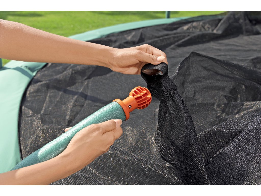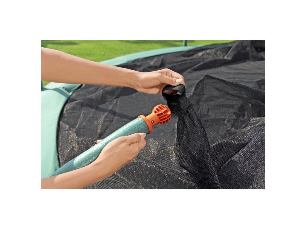 Bestway® Xtreme Air™ je extra velká zahradní trampolína s impozantním průměrem 427 cm, která poskytuje maximální prostor pro zábavu celé rodiny. Technické parametry: Průměr: 427 cm Výška: 286 cm Antikorozní práškově lakovaný a pozinkovaný ocelový rám UV odolné materiály 84 pozinkovaných pružin Obsah balení: Ochranná síť s L-zipem 6x zemní kotvy 1x napínák pružin (patentovaný) 12x koncovky nohou 1x vstupní žebřík 89 cm Polstrované držáky sítě Hlavní výhody: Maximální prostor pro skákání Extra robustní konstrukce Snadná montáž pomocí pružinových čepů Kompletní bezpečnostní síť po obvodu Vysoký vstupní žebřík pro pohodlný přístup Bezpečnostní prvky: Ochranná síť po celém obvodu Polstrované sloupky Zesílené zemní kotvení (6 kotev) UV odolné materiály Stabilizační koncovky nohou Bezpečný vstupní žebřík Bezpečnostní upozornění: ⚠️ Vhodné pro děti od 6 let ⚠️ Nutný dohled dospělé osoby během používání ⚠️ Při vstupu a výstupu používejte žebřík ⚠️ Umístěte na stabilní a rovný povrch ⚠️ Pravidelně kontrolujte stav trampolíny Dodáváno v barevné krabici.