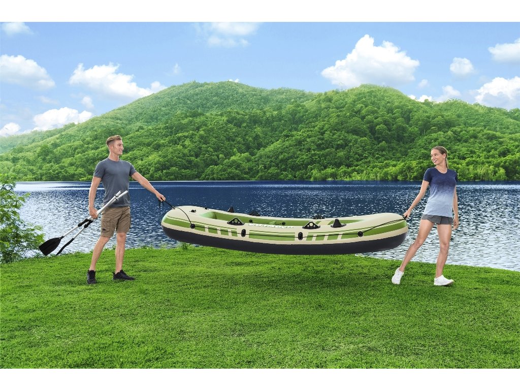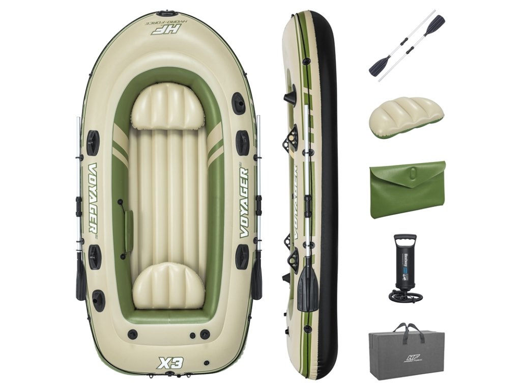 Vydejte se na dobrodružnou plavbu s nafukovacím člunem Bestway VOYAGER X3 RAFT SET, který je jako stvořený pro rodinné výlety či rybářské expedice. Díky prostorné konstrukci pojme až 3 dospělé osoby s celkovou hmotností do 360 kg. Člun je vyroben z vysoce odolného materiálu Inflata-Shield, který je odolný vůči propíchnutí a zaručuje dlouhodobou životnost a stabilitu na vodě. Pro maximální pohodlí při plavbě jsou součástí člunu nafukovací podsedáky a samostatně nafukovací podlaha, která poskytuje vynikající odpružení a komfort. Člun je navíc vybaven po stranách držáky vesel a vestavěnými držáky na rybářské pruty, což ocení každý nadšený rybář. Bezpečnost a praktičnost podtrhuje kapsa pro uložení základních potřeb a ovinovací lano, které usnadňuje přepravu a dokování. S člunem Voyager X3 dostanete vše potřebné pro okamžité vodní dobrodružství – pár hliníkových vesel, ruční pumpu, přenosnou tašku a záplatu na opravu pro případ nečekaných situací. Přesvědčivé a persuasivní odrážky: - Odolný materiál: Inflata-Shield zaručuje vysokou odolnost proti propíchnutí a prodlužuje životnost člunu. - Komfortní plavba: Nafukovací podlaha a podsedáky zajistí pohodlné sezení i během delších výletů. - Vše pro rybáře: Držáky na pruty a vesla umožňují snadné vykonávání vašeho koníčku. - Praktické příslušenství: Součástí balení jsou kvalitní vesla, pumpa a přenosná taška pro snadnou manipulaci. - Bezpečnostní prvky: Ovinovací lano a kapsa na drobnosti přispívají k bezpečnosti a pohodlí na vodě. Připravte se na nezapomenutelné zážitky na vodě s nafukovacím člunem Bestway VOYAGER X3 RAFT SET – vaším spolehlivým parťákem pro letní dobrodružství! až 3 dospělí s maximální hmotností 360 kg materiál odolává propíchnutí, omezuje natahování a zlepšuje přilnavost nafukovací podlaha pro větší pohodlí nafukovací podsedáky po straně držáky vesel vestavěné držáky rybářských prutů kapsa na uložení základních potřeb ovinovací lano pro snadnou přepravu a dokování obsah balení: člun, pár hliníkových vesel (145 cm dlouhá), pouzdro na výbavu, ruční pumpa, přenosná taška, záplata na opravu Specifikace Materiál Inflata-Shield Šířka 137 cm Délka 294 cm Výška 39 cm Hmotnost 11.4 kg Nosnost 360 kg