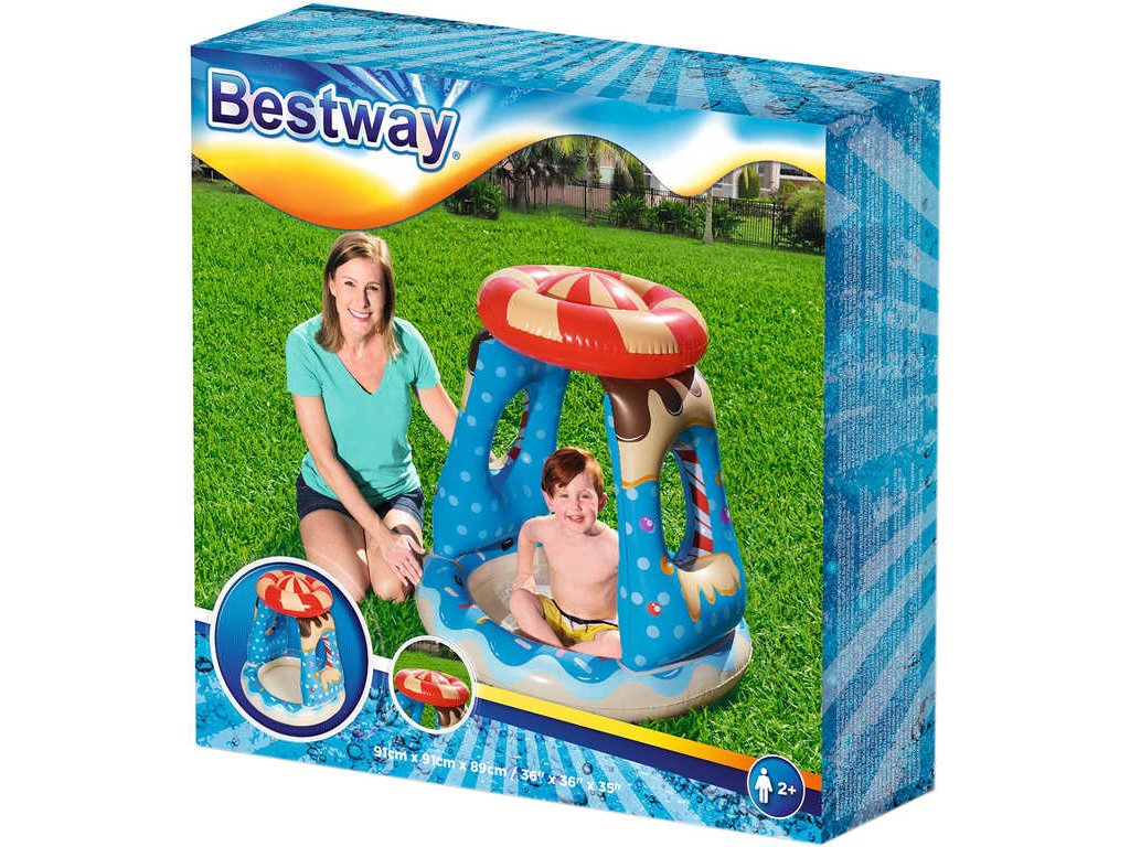 Dětský kulatý bazén se stříškou s motivem cukrátek . Nafukovací stříška účinně chrání dítě proti přímému slunci. Bazének je vyroben z kvalitních materiálů. Stěny bazénku jsou vyrobené z velmi pevného, a