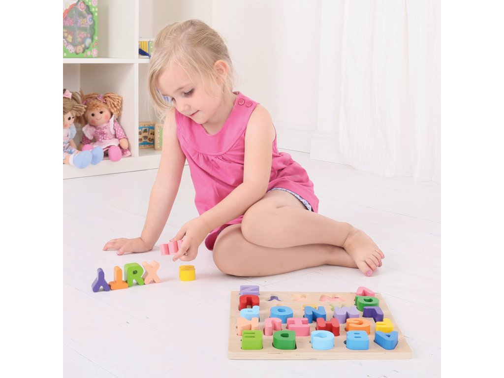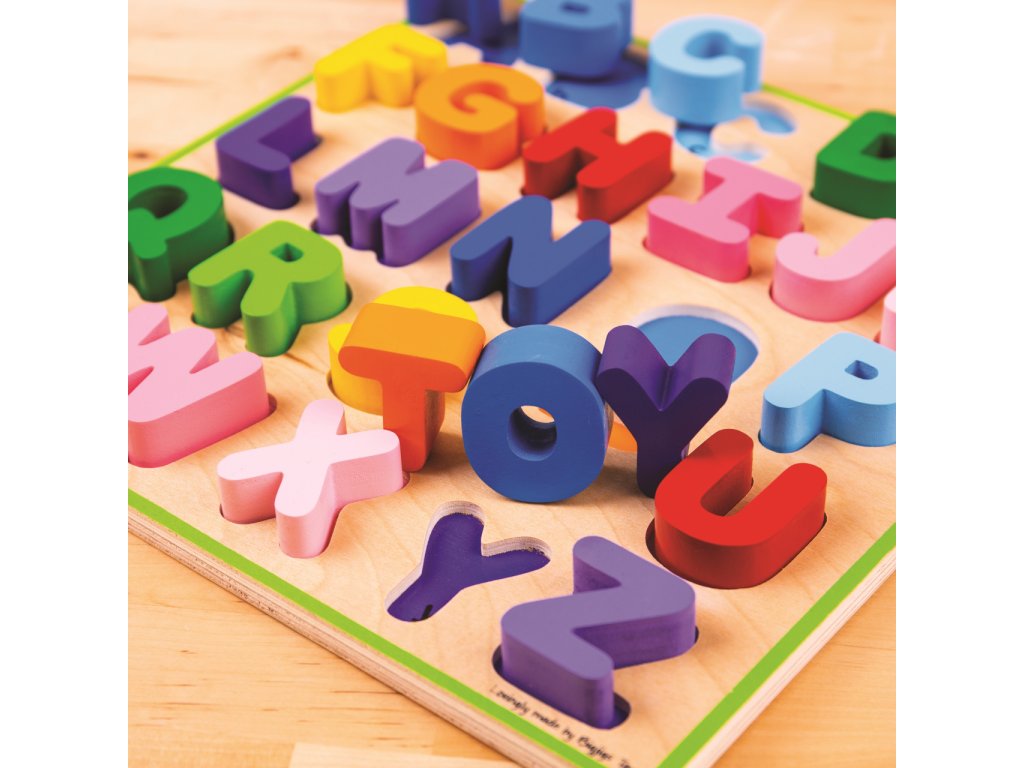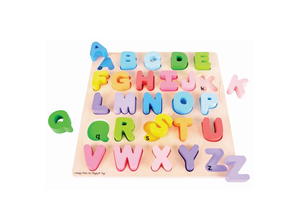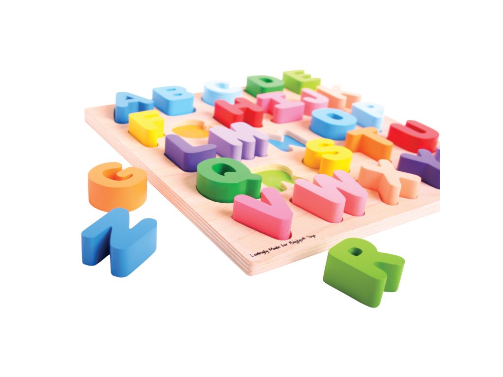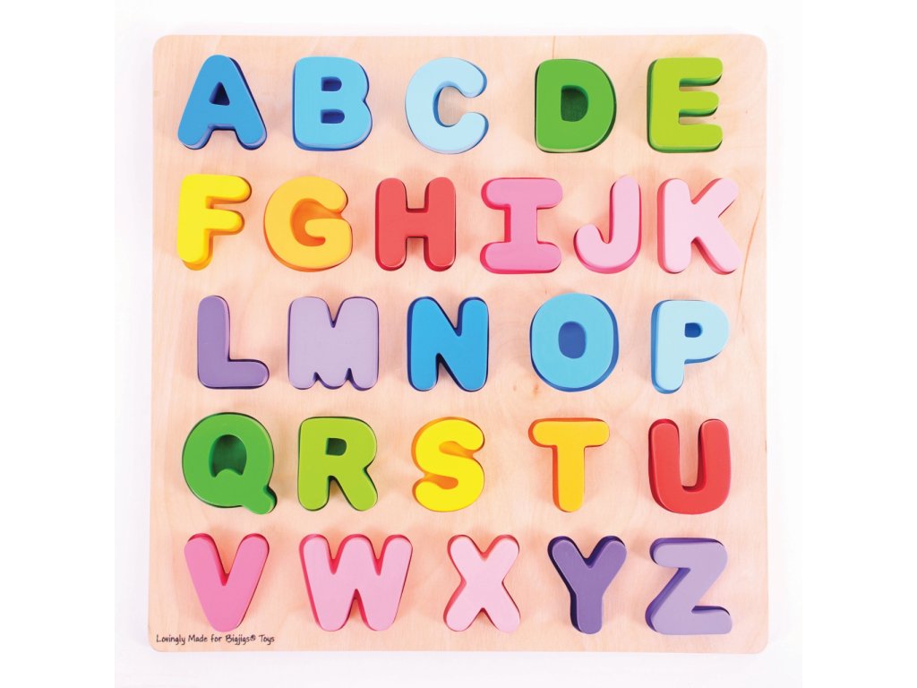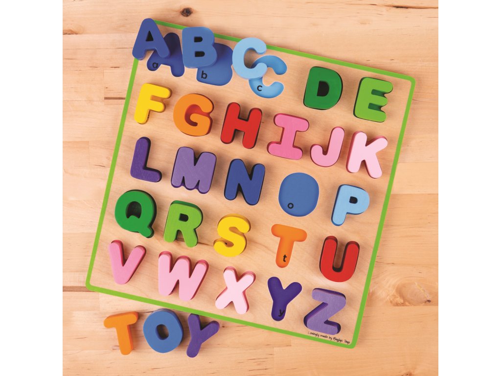 Pomocí této dřevěné pestrobarevné abecedy bude pro děti učení písmenek hračka. Každé písmenko je barevně sladěno se svým základním otvorem, což pomáhá rozvíjet schopnost vzpomínání a rozpoznávání. Dílky jsou robustní, akorát pro malou dětskou ručku. Pro toto vkládací puzzle je charakteristická šířka použitého materiálu, tím i bezpečnost hračky. Pro děti jednoduše uchopitelné. Hlavní vlastnosti: součástí balení je vše dle obrázkuobsahuje 26 dílkůvyrobeno z vysoce kvalitních materiálůvyhovuje současným evropským bezpečnostním normám