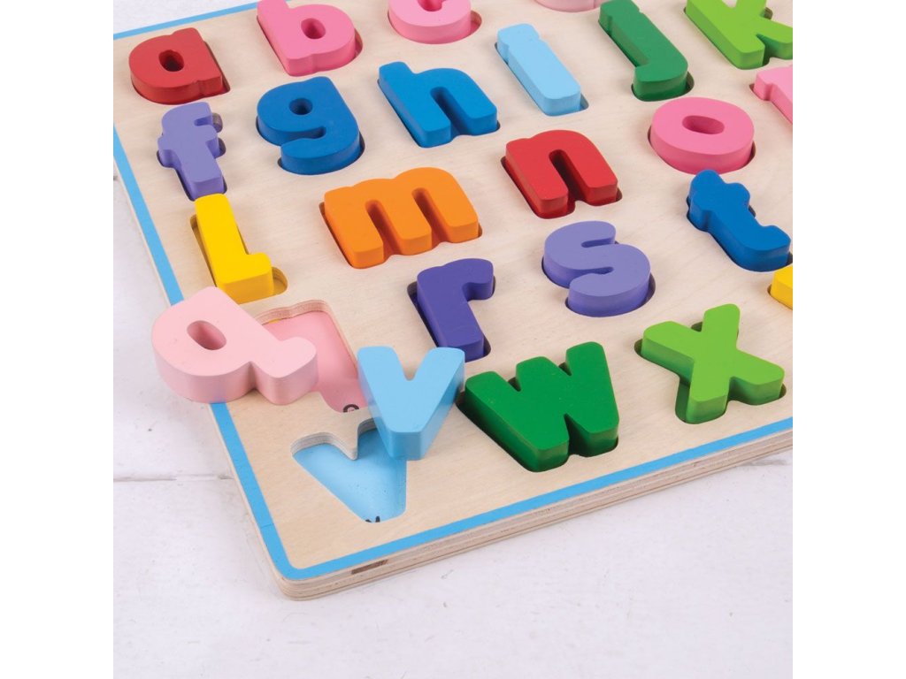 Pomocí této dřevěné pestrobarevné abecedy bude pro děti učení písmenek hračka. Každé písmenko je barevně sladěno se svým základním otvorem, což pomáhá rozvíjet schopnost vzpomínání a rozpoznávání. Dílky jsou robustní, akorát pro malou dětskou ručku. Pro toto vkládací puzzle je charakteristická šířka použitého materiálu, tím i bezpečnost hračky. Pro děti jednoduše uchopitelné. Hlavní vlastnosti: součástí balení je vše dle obrázkuobsahuje 26 dílkůvyrobeno z vysoce kvalitních materiálůvyhovuje současným evropským bezpečnostním normám