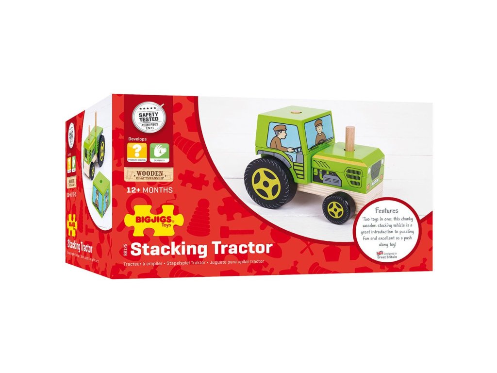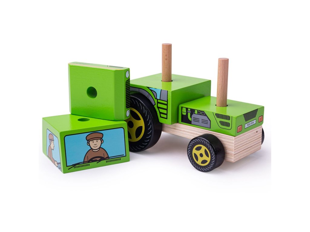 Dvě hračky v jedné! Nasazovačka traktor pomůže s rozvojem zručnosti a dovedností řešení problémů. Než budete moci s traktorem vyjet, musíte jej správně poskládat. Hračka má pohyblivá kolečka. Vyrobeno z kvalitních materiálů ze zodpovědných zdrojů. Splňuje evropské bezpečnostní standardy. Hlavní vlastnosti: nasazovací dílypohyblivá kolečkaideální velikost pro malé dětské ručičky