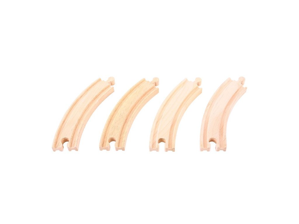 Toto balení obsahuje 4 dlouhé zatáčky z BigJigs železničního sortimentu. Jsou vyrobeny z kvalitního tvrdého dřeva, jsou také kompatibilní s dalšími dřevěnými vláčkodráhami a tím se stanou skvělým přírustkem do vaší sbírky dřevěných železnic.Hlavní vlastnosti: vláčkodráhy a jejich příslušenství značky Bigjigs Rail je možno kombinovat se všemi dalšími dřevěnými vláčkodráhami na trhuvyrobeno z kvalitních a zodpovědně získaných přírodních materiálůodpovídá současným evropským bezpečnostním normámpodporuje představivost, obratnost a koordinaci
