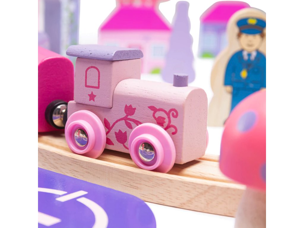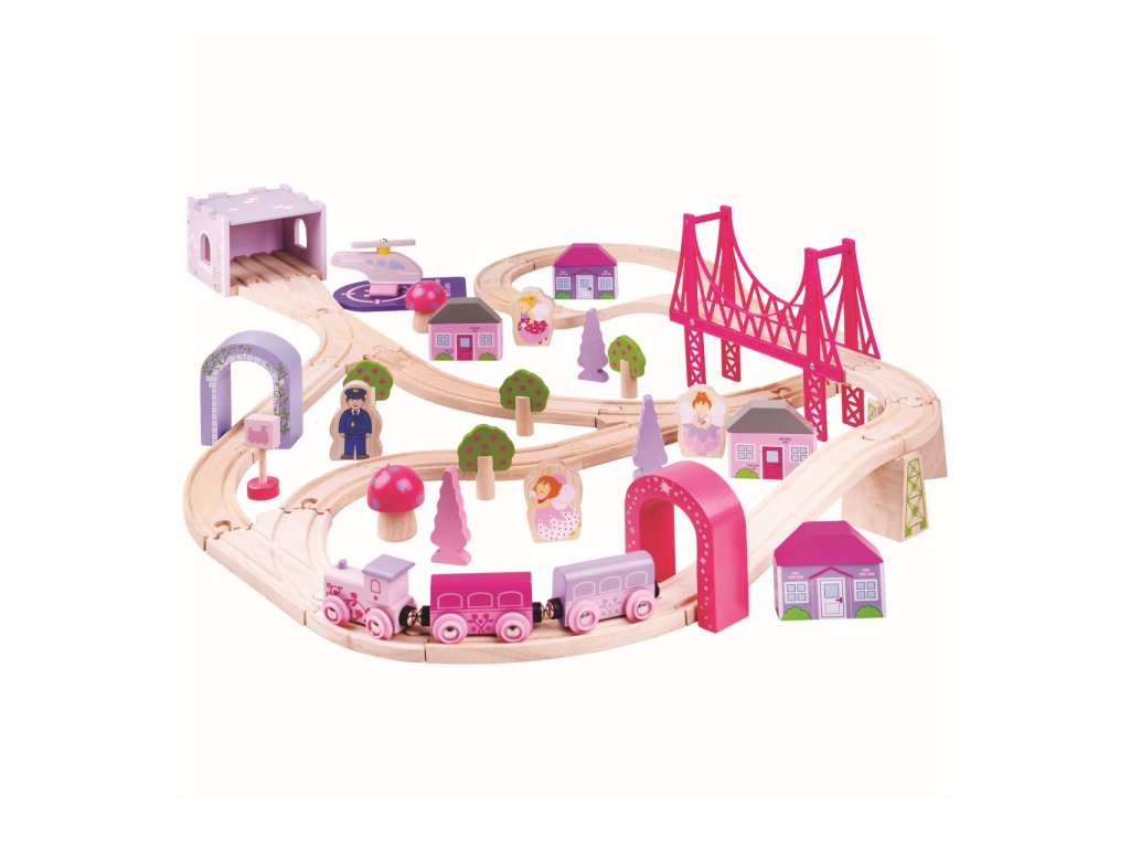 Originální vláčkodráha nejen pro malé slečny s veškerým příslušenstvím, 75 kusů v odstínech růžové a fialové. Hlavní vlastnosti: vláčkodráhy a jejich příslušenství značky Bigjigs Rail lze kombinovat se všemi ostatními dřevěnými železničními drahami na trhuvyrobeno z kvalitních a zodpovědně získaných přírodních materiálůodpovídá současným evropským bezpečnostním normámpodporuje představivost, obratnost a koordinaci