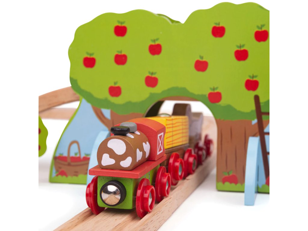 Sada se skládá z 45 dílků. Krásná vláčkodráha v motivu farmy s postavičkami lidí, zvířat, stromů... Hlavní vlastnosti: vláčkodráhy a jejich příslušenství značky Bigjigs Rail je možno kombinovat se všemi dalšími dřevěnými vláčkodráhami na trhuvyrobeno z kvalitních a zodpovědně získaných přírodních materiálůodpovídá současným evropským bezpečnostním normámpodporuje představivost, obratnost a koordinaci