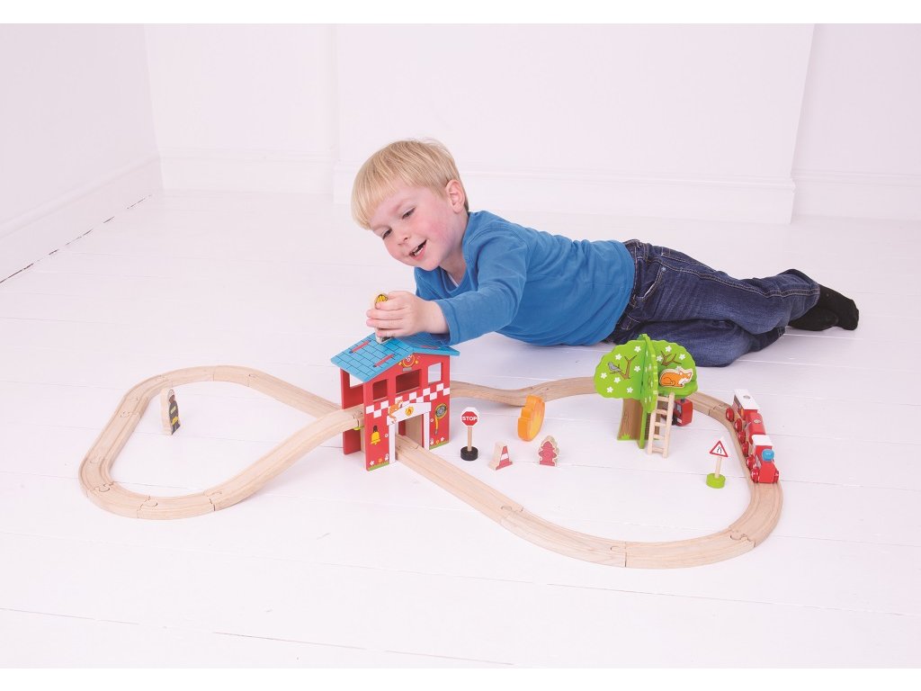 Bigjigs Rail Dřevěná vláčkodráha hasičská stanice