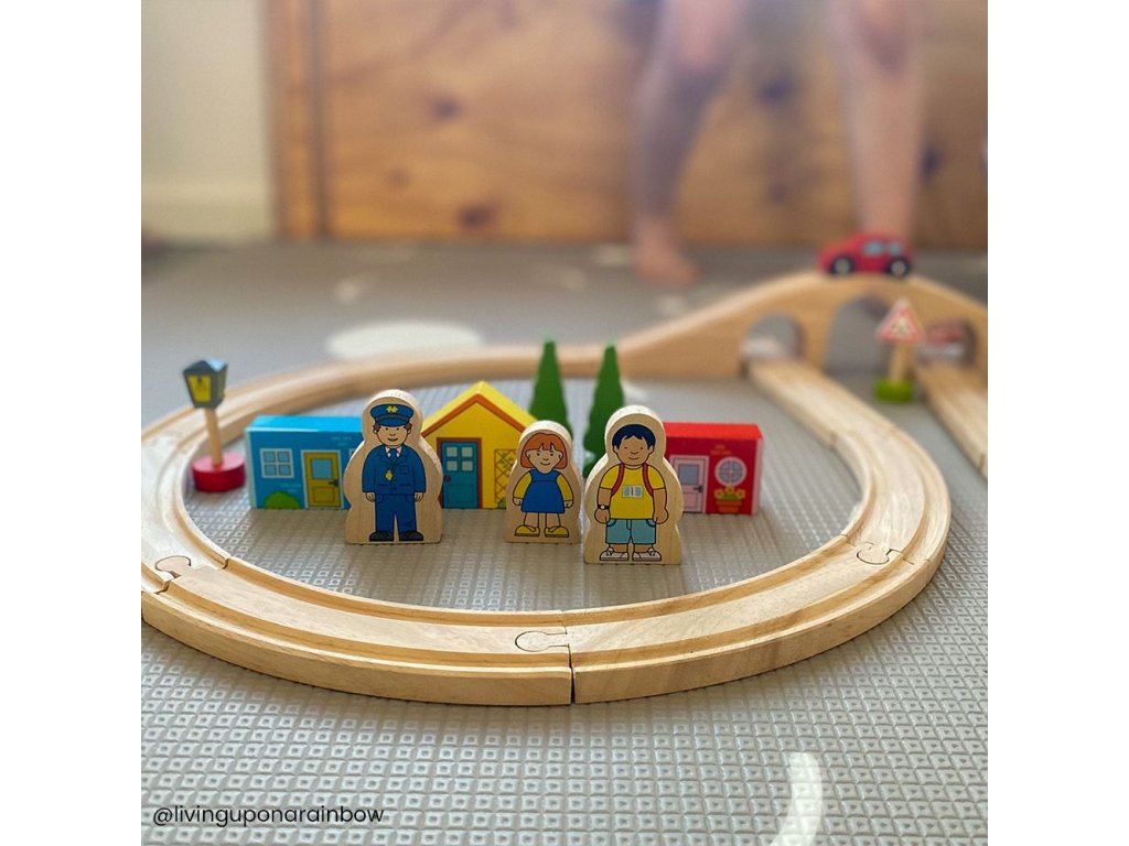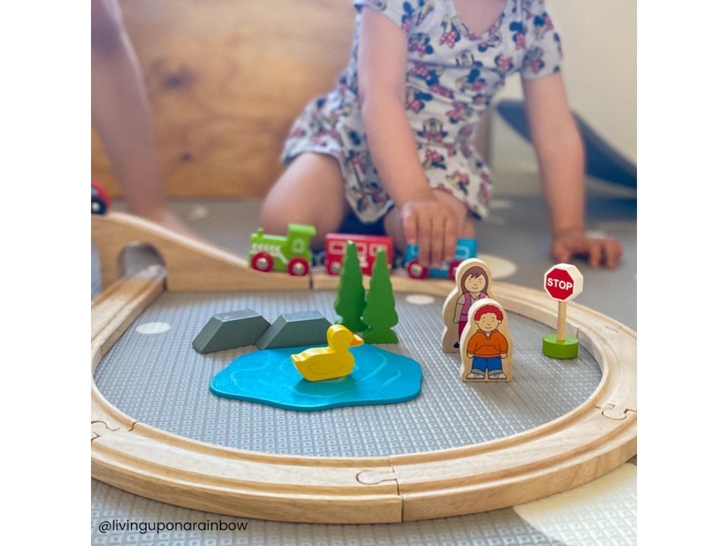 Hrací set můžete libovolně doplňovat dalšími prvky dřevěných kolejí, cest, vláčků, staveb a dalšího příslušenství z naší nabídky. Balení obsahuje: 1 ks most3 ks kolej rovná12 ks kolej zahnutá1 ks domeček1 ks lokomotiva1 ks vagónek modrý1 ks vagónek červený2 ks strom1 ks dopravní značka1 ks výpravčí1 ks holčička Hlavní vlastnosti: Vláčkodráhy a jejich příslušenství značky Bigjigs Rail je možno kombinovat se všemi dalšími dřevěnými vláčkodráhami na trhu.Vyrobeno z kvalitních a zodpovědně získaných přírodních materiálů.Odpovídá současným evropským bezpečnostním normám.Podporuje představivost, obratnost a koordinaci.