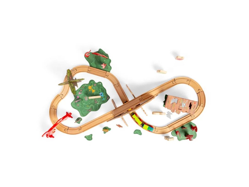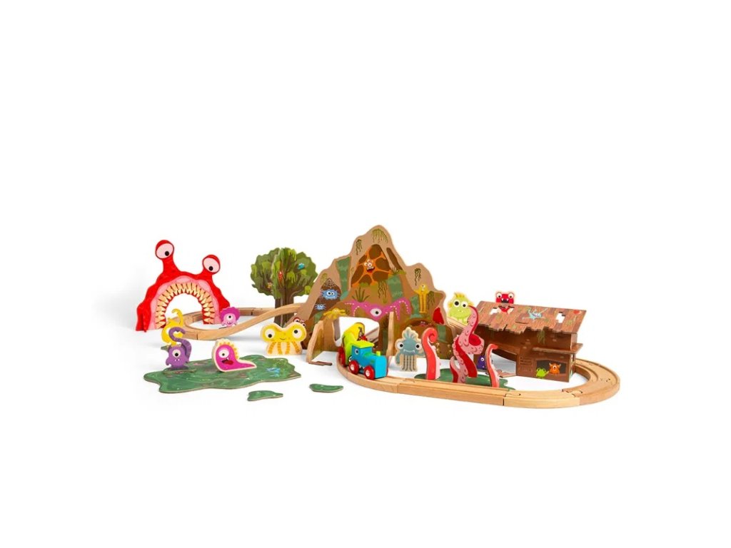 Připravte se na dobrodružnou jízdu plnou strašidelných bytostí a strach budících míst! Sada se skládá z 50 dílů a obsahuje lokomotivu se dvěma vagónky, koleje, tunel, most, příšerky, strom se zvířátky, bažinu, chatrč a spoustu dalších doplňků. Vláčkodráha Příšerky je zábavná, podněcuje k imaginativní hře, inspiruje k vymýšlení a hraní tematických příběhů, obohacuje kreativní myšlení a rozvíjí jazykové dovednosti. Skládání dráhy je také vynikající pro zlepšení jemné motoriky dětí a schopnosti řešit problémy. Skvěle se hodí k vláčku a tunelu Příšerky. Vláčkodráhy a příslušenství Bigjigs Rail je možno kombinovat s dřevěnými vláčkodráhami ostatních výrobců. Vyrobeno z prvotřídního a udržitelného FSC® certifikovaného dřeva a opatřeno netoxickými barvami a laky. Splňuje aktuální evropské bezpečnostní normy. Hlavní vlastnosti: 50 dílůpodporuje představivost a kreativní myšlení dětízlepšuje sociální a jazykové dovednostirozvíjí obratnost a koordinaci ruka-okokompatibilní s vláčkodráhami většiny ostatních výrobcůvyrobeno ze dřeva s certifikací FSC®vhodné od 3 let věku Značka a certifikát FSC® (Forest Stewardship Council) zaručuje, že dřevo, ze kterého byl produkt vyroben, nebylo vytěženo nelegálně a pochází z lesů obhospodařovaných šetrným či přírodě blízkým způsobem, ve kterém jsou dodržovány přísné environmentální a sociální požadavky. Značka FSC® na výrobku znamená, že svým nákupem pomáháte chránit lesy a podporujete šetrné, odpovědné či přírodě blízké hospodaření, díky kterému jsou naše lesy stabilnější, zdravější, mají přirozenou druhovou skladbu a lépe odolávají negativním následkům klimatických změn.