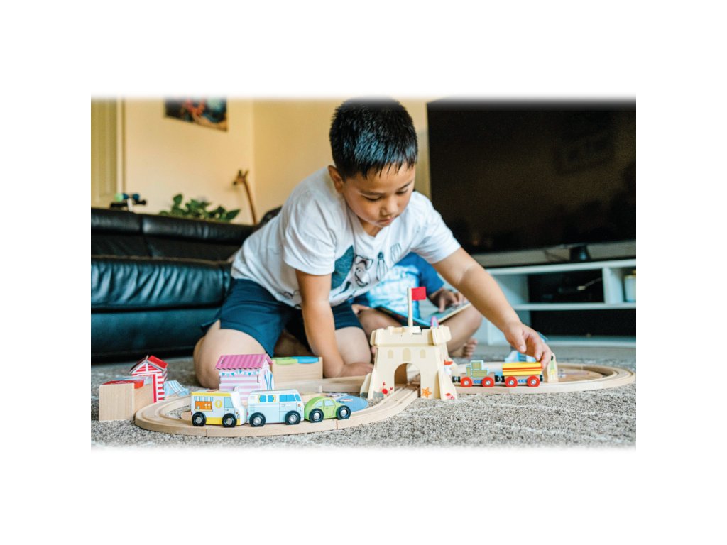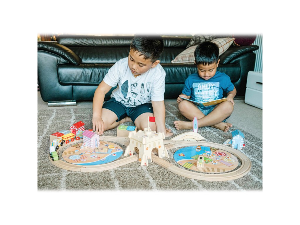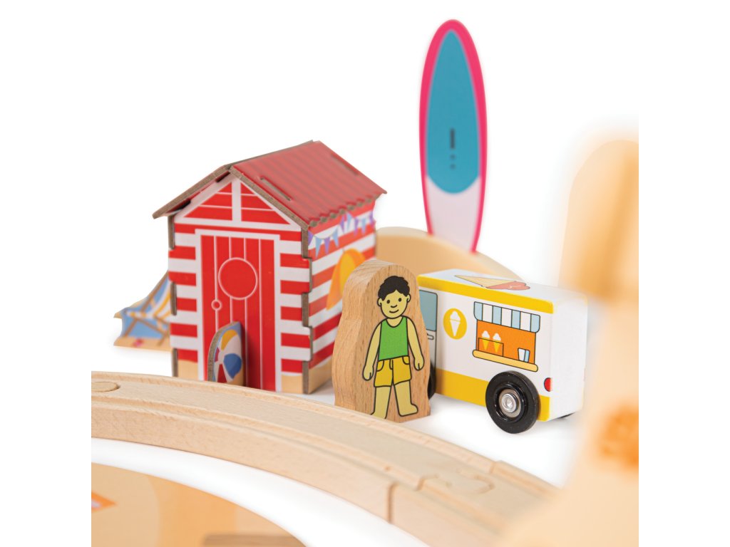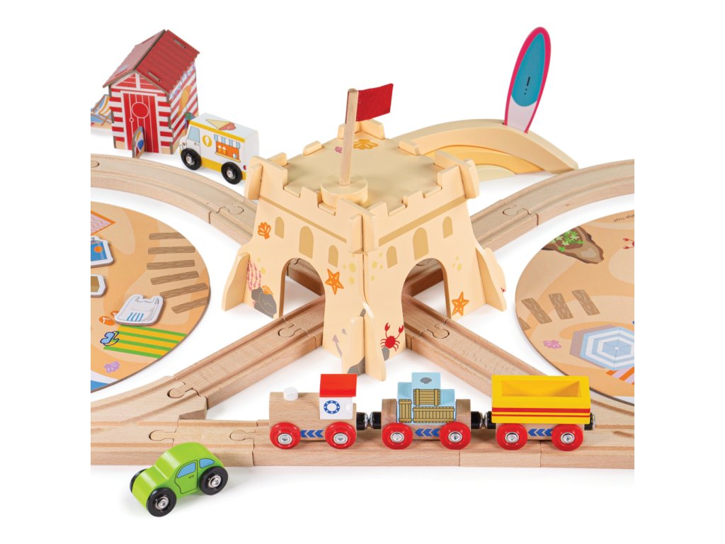 Bigjigs Rail Dřevěná vláčkodráha Úklid pobřeží 70 dílů