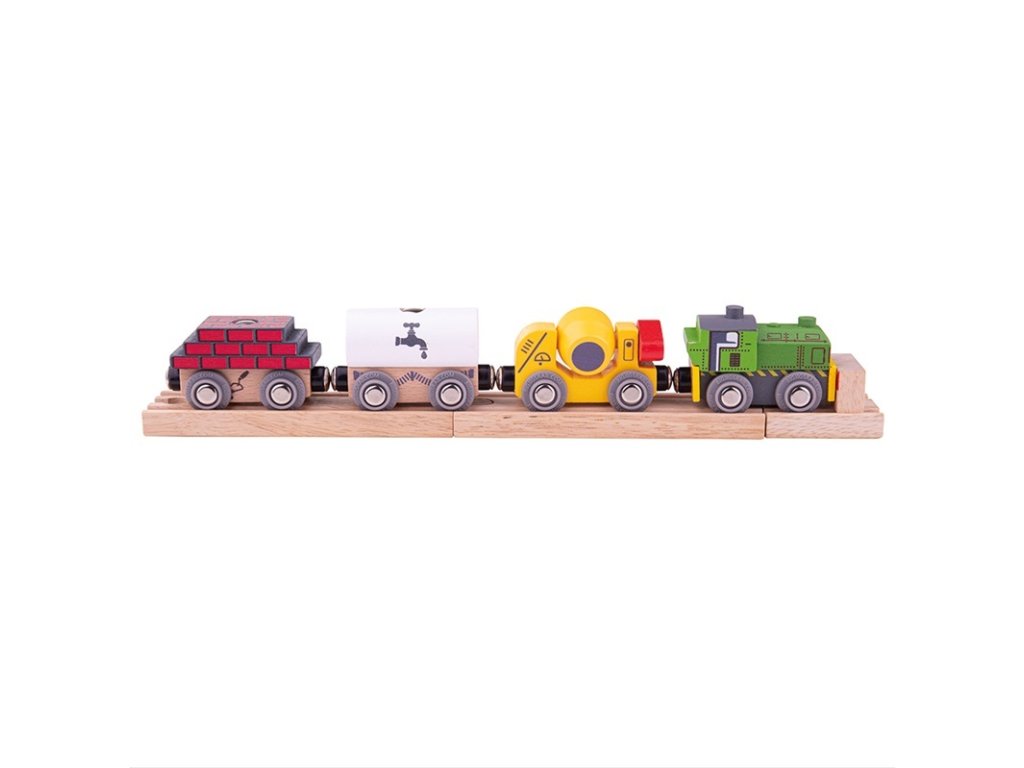 Je to únavná práce na staveništi? Stavební vláček je tu, aby vám pomohl s těžkým zvedáním! Nalož dřevěný vlak a doruč dělníkům cihly, cement a vodu. Vše za chviličku. Stavební vláček je skvělým doplňkem jakékoli dřevěné vlakové soupravy. je 31,5 cm dlouhý a je dodáván se dvěma odnímatelnými náklady, třemi vagóny a zelenou mašinkou. Dřevěný vláček má magnetické spojky, které jej snadno spojí s jinými vláčky a vagóny. Hlavní vlastnosti: Vláčkodráhy a jejich příslušenství značky Bigjigs Rail je možno kombinovat se všemi dalšími dřevěnými vláčkodráhami na trhuVyrobeno z kvalitních a zodpovědně získaných přírodních materiálůOdpovídá současným evropským bezpečnostním normámPodporuje představivost, obratnost a koordinaci
