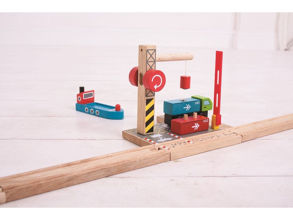 Toto překladiště zvýší dětskou představivost a hraní si na reálný svět! Set obsahuje dřevěné nákladní auto s kontejnery, dřevěný jeřáb. Set slouží k překládání nákladu z auta nebo vagónku na loď pomocí magnetického jeřábu. Hlavní vlastnosti: vláčkodráhy a jejich příslušenství značky Bigjigs Rail je možno kombinovat se všemi dalšími dřevěnými vláčkodráhami na trhuvyrobeno z kvalitních a zodpovědně získaných přírodních materiálůodpovídá současným evropským bezpečnostním normámpodporuje představivost, obratnost a koordinaci