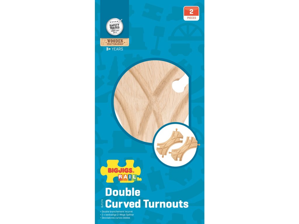 Toto balení obsahuje 2 kusy dvojitých výhybek z našeho BigJigs železničního sortimentu. Vyrobeny jsou z kvalitního tvrdého dřeva a jsou kompatibilní s dalšími dřevěnými železničními systémy našich vláčkodráh a tím se stanou skvělým přírustkem do vaší sbírky železnic. Hlavní vlastnosti: Vláčkodráhy a jejich příslušenství značky Bigjigs Rail je možno kombinovat se všemi dalšími dřevěnými vláčkodráhami na trhu.Vyrobeno z kvalitních a zodpovědně získaných přírodních materiálů.Odpovídá současným evropským bezpečnostním normám.Podporuje představivost, obratnost a koordinaci.