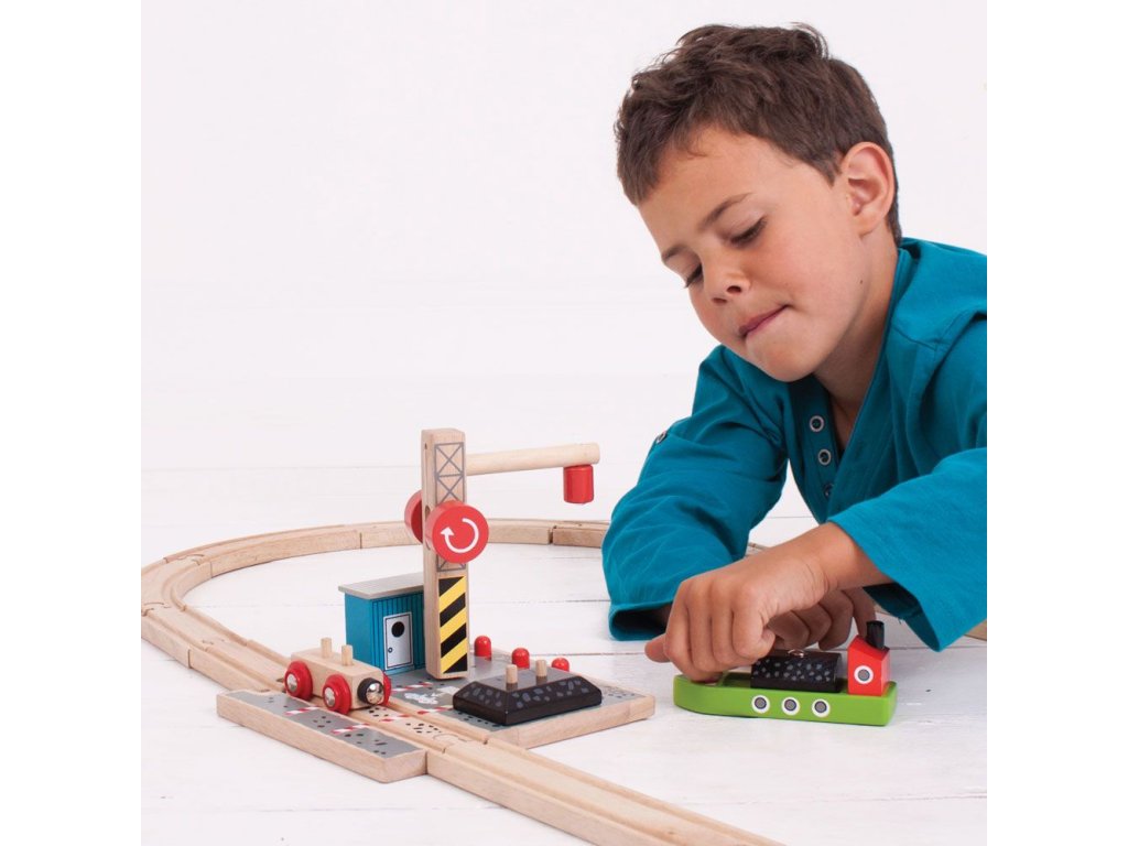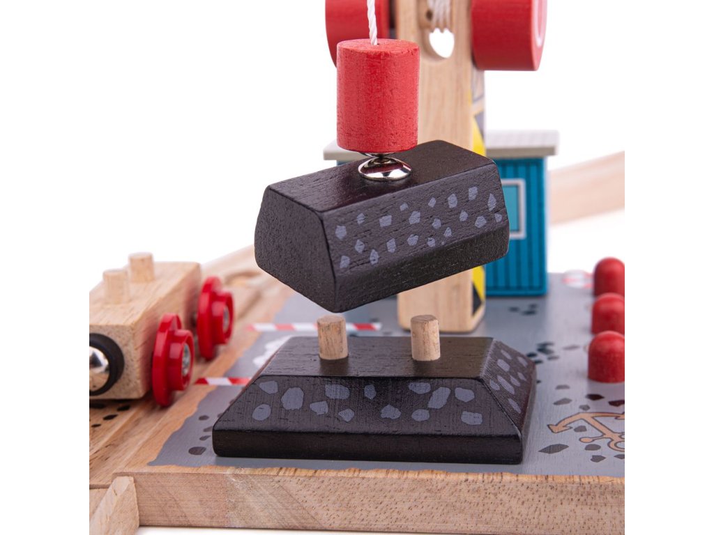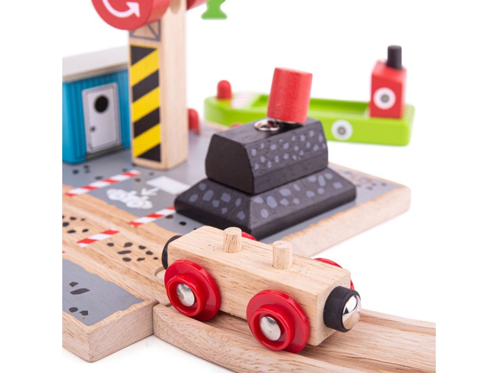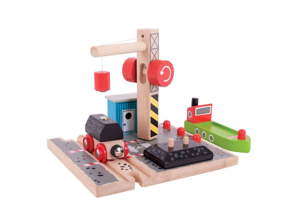 Toto krásné přístaviště zvýší dětskou představivost a hraní si na reálný svět! Set obsahuje nákladní loď, dřevěný jeřáb s magnetickou kladkou, vagónek s uhlím. Set slouží k překládání nákladu z vagónku na loď pomocí magnetického jeřábu. Hlavní vlastnosti: Vláčkodráhy a jejich příslušenství značky Bigjigs Rail je možno kombinovat se všemi dalšími dřevěnými vláčkodráhami na trhu.Vyrobeno z kvalitních a zodpovědně získaných přírodních materiálů.Odpovídá současným evropským bezpečnostním normám.Podporuje představivost, obratnost a koordinaci.