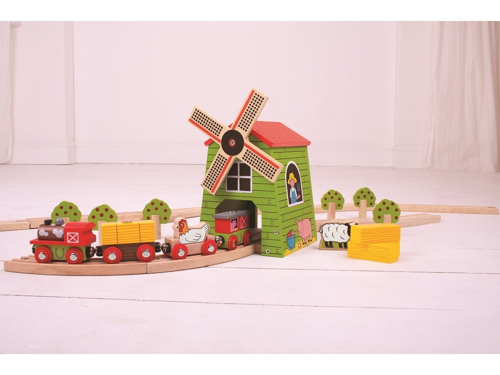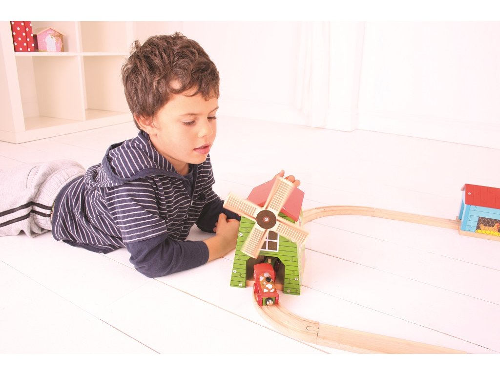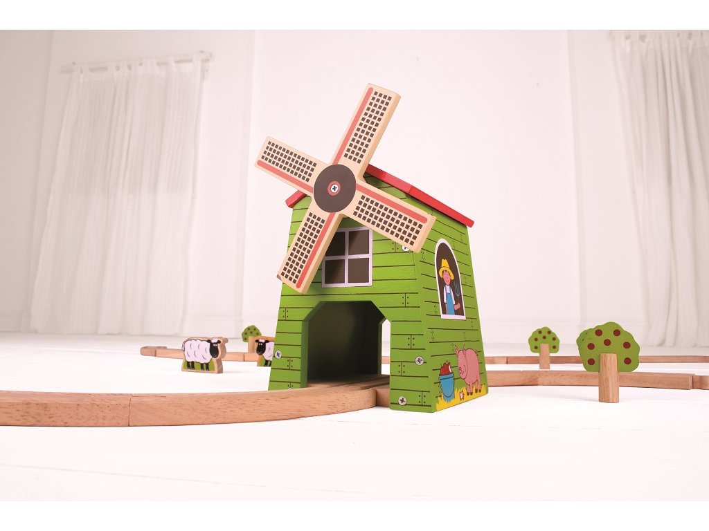 Malé železniční nadšence jistě potěší průjezd svými vlaky skrz větrný mlýn v průběhu jejich železničního dobrodružství. Lopatky mlýnu jsou pohyblivé. Součástí balení není vláček, ani příslušenství.Hlavní vlastnosti: vláčkodráhy a jejich příslušenství značky Bigjigs Rail je možno kombinovat se všemi dalšími dřevěnými vláčkodráhami na trhuvyrobeno z kvalitních a zodpovědně získaných přírodních materiálůodpovídá současným evropským bezpečnostním normámpodporuje představivost, obratnost a koordinaci