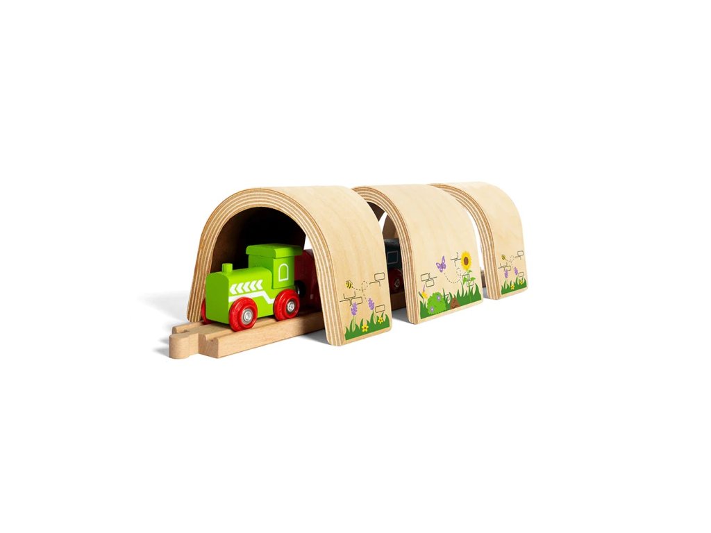 Zakřivený vlakový tunel je krásným doplňkem, který jistě oživí a učiní vlakovou soupravu vašeho nejmenšího železničáře mnohem atraktivnější. Lze jej aranžovat do různých kombinací a vytvořit tak různé tvary, dle fantazie dítěte. Buďto jako jednoduchý, rovný tunel s otočením o 180 stupňů, nebo spojením čtyř těchto tunelů vytvořit obloukový tunel, který je kompatibilní s Long Curve Track. Vyrobeno z robustní překližky s unikátním přírodním povrchem. Vyrobeno z vysoce kvalitních, zodpovědně získaných materiálů a odpovídá současným evropským bezpečnostním normám. Hlavní vlastnosti: vyrobeno z vysoce kvalitních, zodpovědně získaných materiálůkompatibilní s jinými značkami dřevěných železnicrozvíjí představivost, obratnost a koordinacisada 3 prvkůvhodné od 3 let