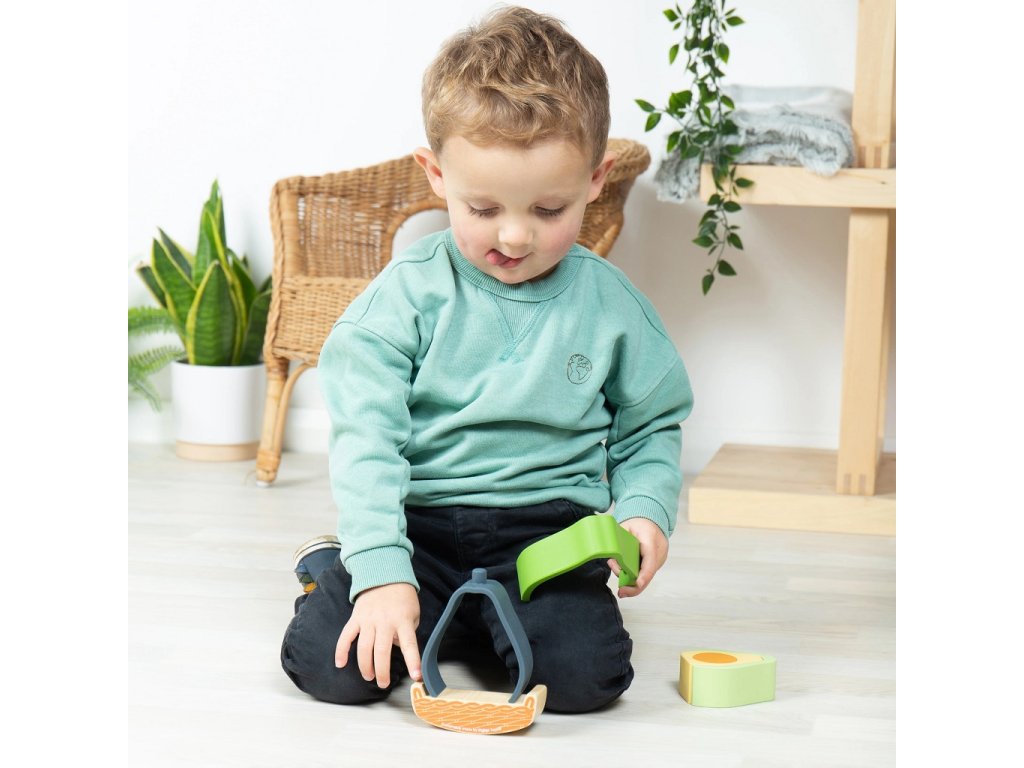 Toto balanční avokádo zahrnuje spoustu aktivit v jednom! Děti mohou využít své fantazie a stohovat jej do různých kreativních tvarů či poskládat kousky zpět dohromady a nechat je houpat v dřevěné základně. Pět stohovatelných kusů ovoce je vyrobeno ze 100% potravinářského silikonu - lze je tedy všemožně mačkat a stlačovat bez ztráty tvaru (což z nich dělá brilantní smyslovou hračku)! Balanční avokádo je navrženo tak, aby se při nácviku třídění a stohování jednotlivých kusů trénovala trpělivost a jemná motorika. Hlavní vlastnosti: rozvíjí zručnost, smyslové dovednosti a koncentracinetoxický, snadno umyvatelný materiál (silikonové dílky lze mýt v myčce) Značka a certifikát FSC® (Forest Stewardship Council) zaručuje, že dřevo, ze kterého byl produkt vyroben, nebylo vytěženo nelegálně a pochází z lesů obhospodařovaných šetrným či přírodě blízkým způsobem, ve kterém jsou dodržovány přísné environmentální a sociální požadavky. Značka FSC® na výrobku znamená, že svým nákupem pomáháte chránit lesy a podporujete šetrné, odpovědné či přírodě blízké hospodaření, díky kterému jsou naše lesy stabilnější, zdravější, mají přirozenou druhovou skladbu a lépe odolávají negativním následkům klimatických změn.