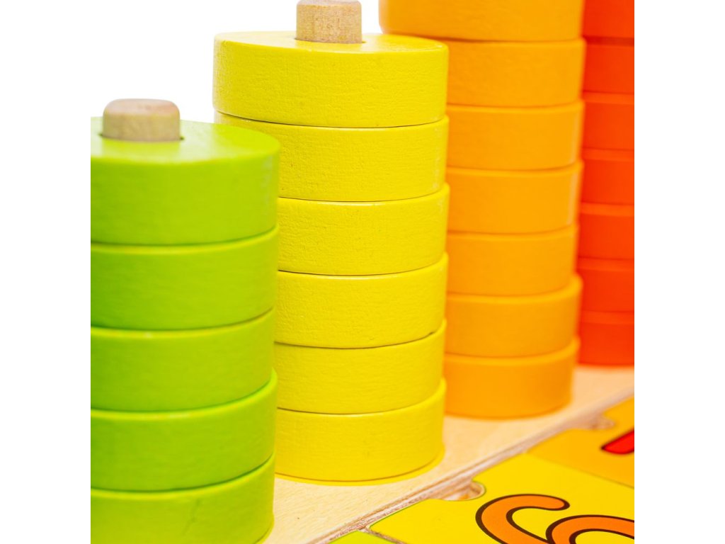 Vaše děti budou milovat tuto velmi aktivní hračku, která obsahuje spoustu barevných disků, které se dají nasouvat na sebe po dřevěné tyčce, a číslic, jež se vkládají do dřevěné destičky. Ideální pro rozvíjení zručnosti, koordinaci a samozřejmě máte i možnost rozvíjet v dítěti jeho vztah k počítání.Hlavní vlastnosti: rozvíjí motoriku dětí a koordinaci pohybůnaučí děti rozlišovat tvary, barvy a číslapodporuje logické myšlení dětí hravou formou