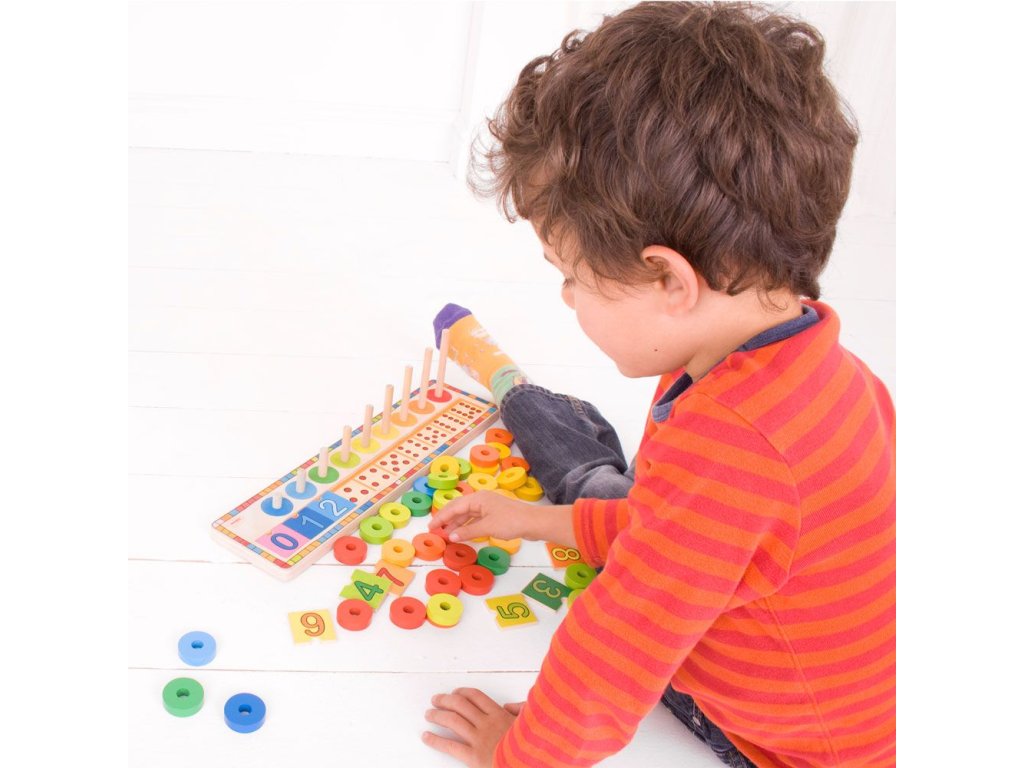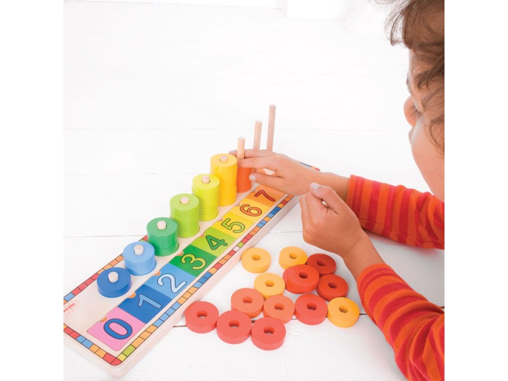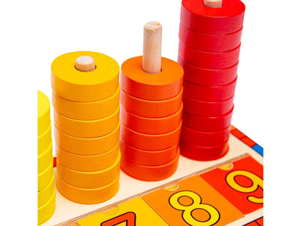 Vaše děti budou milovat tuto velmi aktivní hračku, která obsahuje spoustu barevných disků, které se dají nasouvat na sebe po dřevěné tyčce, a číslic, jež se vkládají do dřevěné destičky. Ideální pro rozvíjení zručnosti, koordinaci a samozřejmě máte i možnost rozvíjet v dítěti jeho vztah k počítání.Hlavní vlastnosti: rozvíjí motoriku dětí a koordinaci pohybůnaučí děti rozlišovat tvary, barvy a číslapodporuje logické myšlení dětí hravou formou