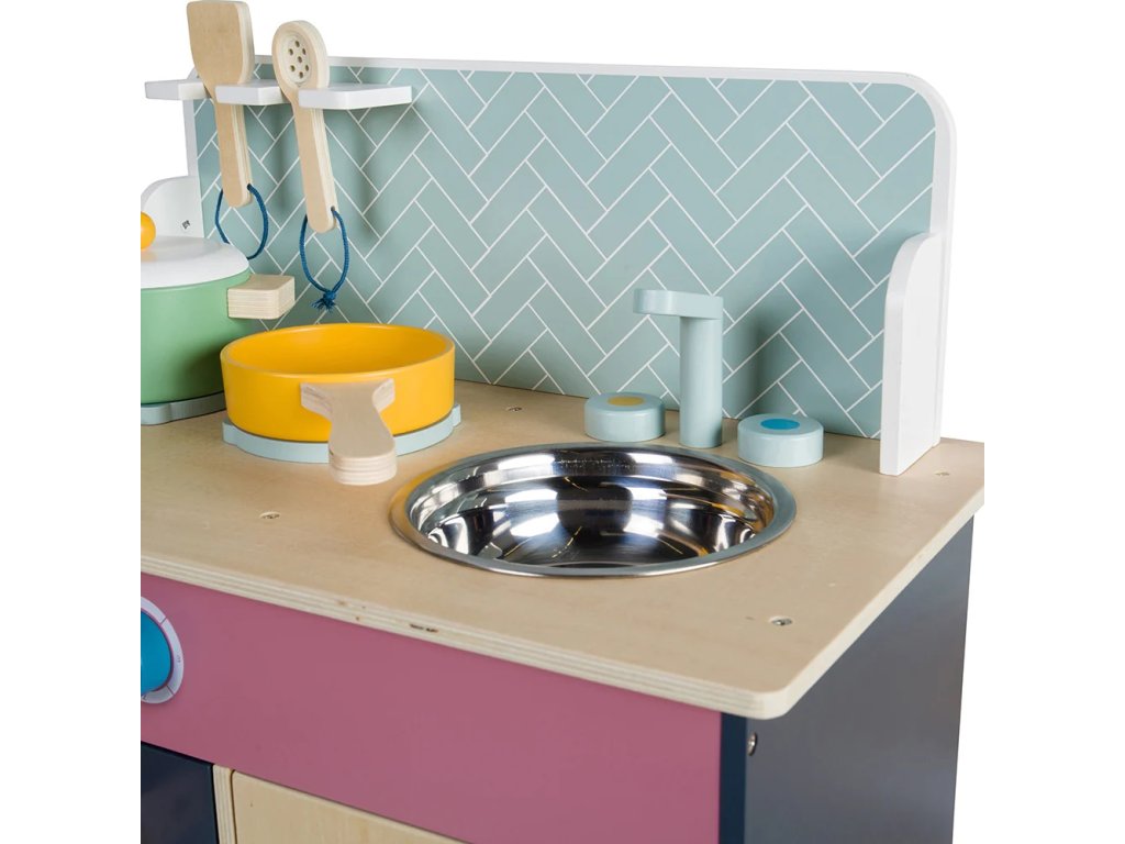 Dětská kuchyňka, v které mohou děti připravit představivou snídani do postele pro své rodiče. Vypadá jako pravá a najdete v ní sporák, troubu, skříňku pod dřezem, dřevěný hrnec a pánev, také naběračku a vařečku. Malí šéfkuchaři a šéfkuchařky si užijí představivou hru, mohou navařit i pro své plyšáky nebo kamarády. Stylová dřevěná kuchyňka v tlumených barvách se bude vyjímat v každém pokoji. Doplnit můžete dřevěným jídlem z naší nabídky.Vyrobeno z eticky získaného a udržitelného dřeva s certifikací FSC®, malováno netoxickými barvami a laky. Odpovídá evropským bezpečnostním standardům. Hlavní vlastnosti: představivá hračkahrnec s poklicí, pánev, naběračka, vařečkavyrobeno z FSC® certifikovaného dřeva60 x 55 x 29,5 cmvhodné od 3 let Značka a certifikát FSC® (Forest Stewardship Council) zaručuje, že dřevo, ze kterého byl produkt vyroben, nebylo vytěženo nelegálně a pochází z lesů obhospodařovaných šetrným či přírodě blízkým způsobem, ve kterém jsou dodržovány přísné environmentální a sociální požadavky. Značka FSC® na výrobku znamená, že svým nákupem pomáháte chránit lesy a podporujete šetrné, odpovědné či přírodě blízké hospodaření, díky kterému jsou naše lesy stabilnější, zdravější, mají přirozenou druhovou skladbu a lépe odolávají negativním následkům klimatických změn.