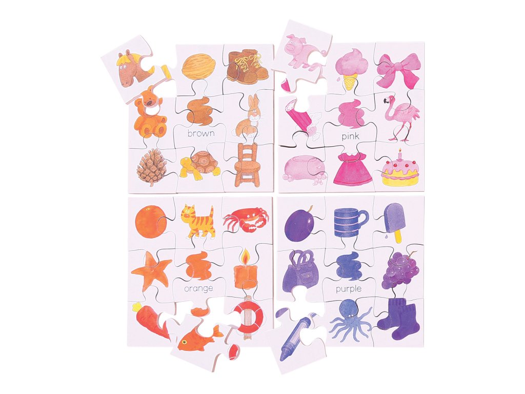 Bigjigs Toys Dřevěné didaktické puzzle barvy 4v1