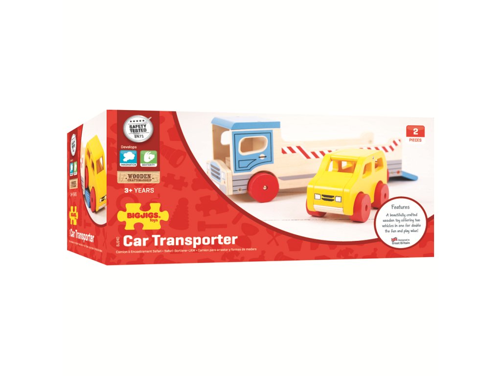 Bigjigs Toys Dřevěné odtahové auto s osobním autem