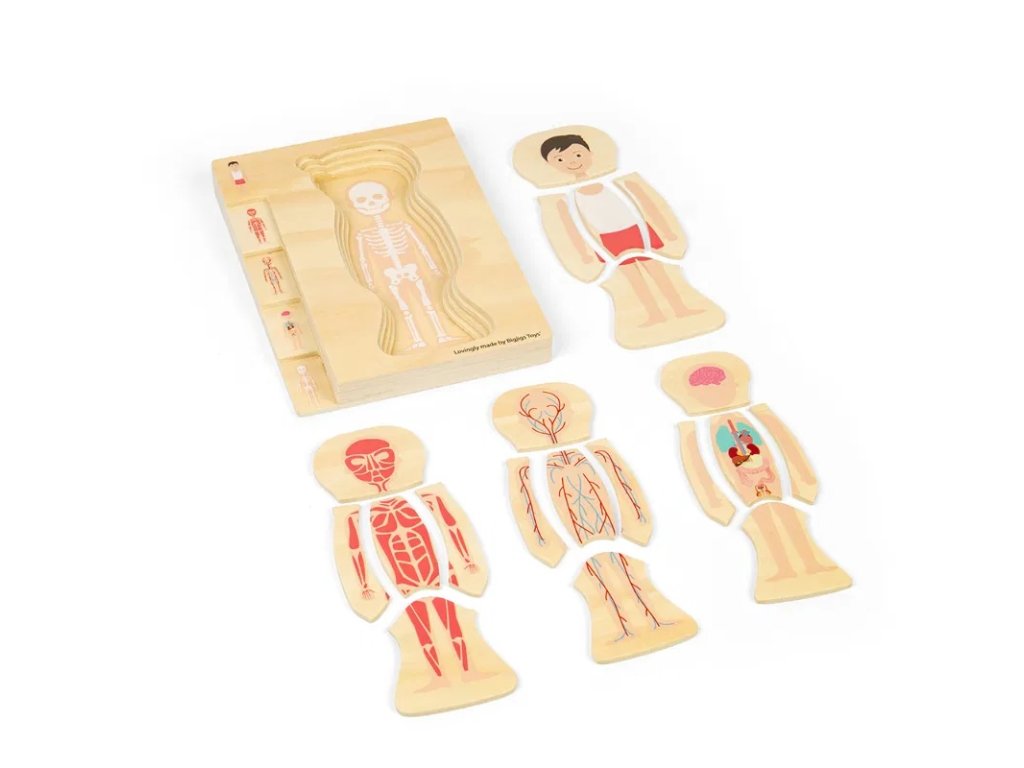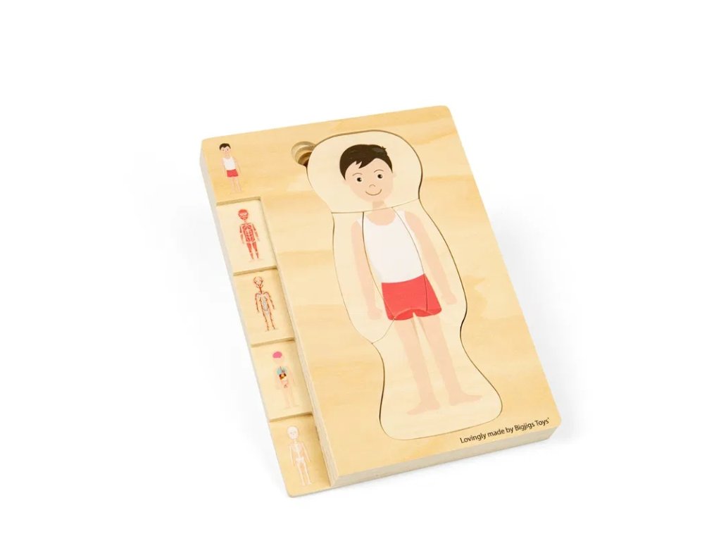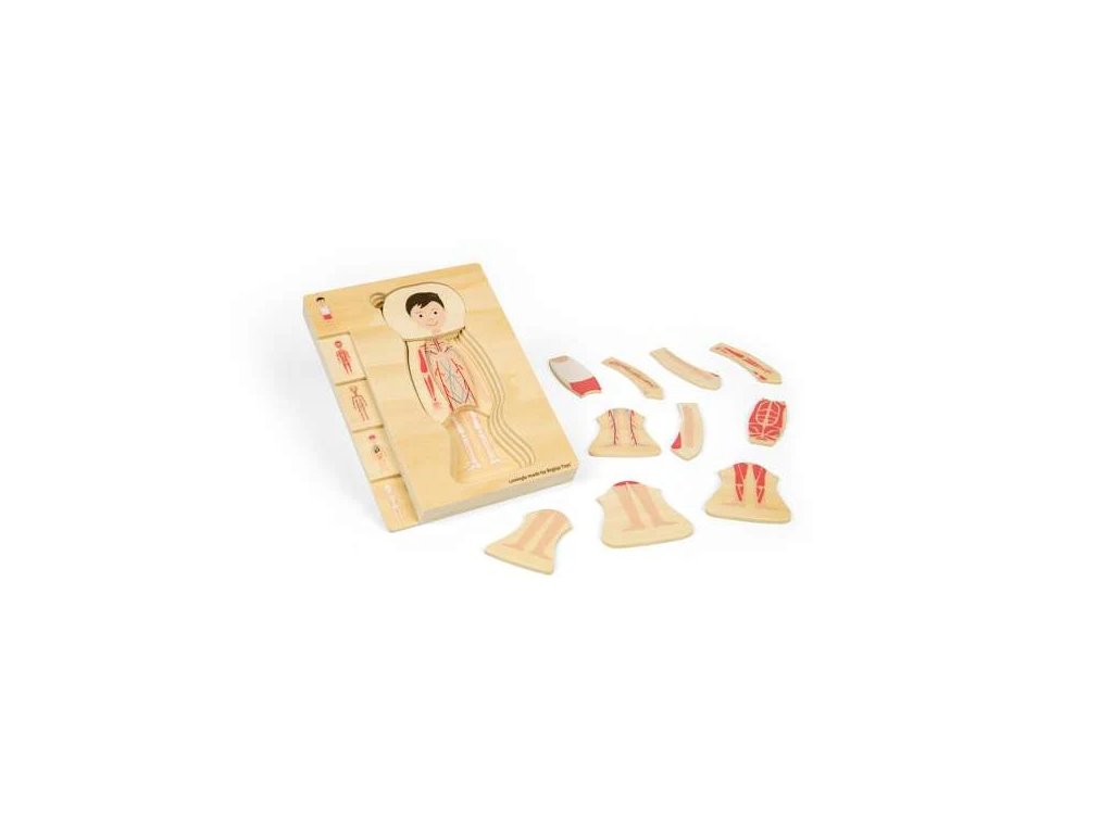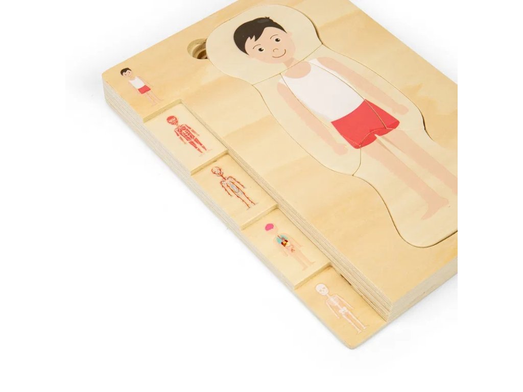 Poznejte fascinující mužské tělo prostřednictvím puzzle. Každá vrstva dětem ukazuje složitou stavbu lidského těla, od kostry až po svaly a orgány. Puzzle jednoduchou, interaktivní a zábavnou formou zpřístupňuje studium anatomie lidského těla. Skládání puzzle rozvíjí jemnou motoriku dětí, schopnost řešit problémy, trpělivost, vytrvalost a prostorovou orientaci a podporuje rozvoj dětí v oblasti STEAM (Science – věda, Technology – technika, Engineering – inženýrství, Arts – umění), což je vzdělávací přístup, který propojuje tyto disciplíny a podporuje kreativitu, logické myšlení a praktické dovednosti. Puzzle je vyrobeno z prvotřídního a udržitelného FSC® certifikovaného dřeva a opatřeno netoxickými barvami a laky. Splňuje aktuální evropské bezpečnostní normy. Hlavní vlastnosti: 26 dílkůrozvíjí jemnou motoriku, trpělivost a vytrvalostpodporuje rozvoj dětí v oblasti STEAMvyrobeno ze dřeva s certifikací FSC®vhodné od 3 let věku Značka a certifikát FSC® (Forest Stewardship Council) zaručuje, že dřevo, ze kterého byl produkt vyroben, nebylo vytěženo nelegálně a pochází z lesů obhospodařovaných šetrným či přírodě blízkým způsobem, ve kterém jsou dodržovány přísné environmentální a sociální požadavky. Značka FSC® na výrobku znamená, že svým nákupem pomáháte chránit lesy a podporujete šetrné, odpovědné či přírodě blízké hospodaření, díky kterému jsou naše lesy stabilnější, zdravější, mají přirozenou druhovou skladbu a lépe odolávají negativním následkům klimatických změn.