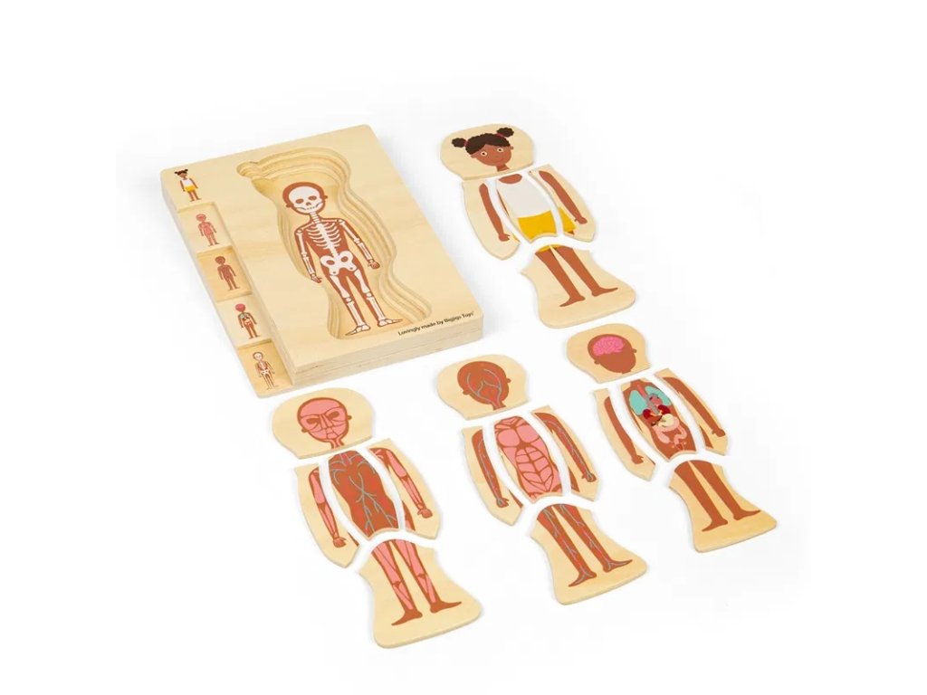 Poznejte fascinující ženské tělo prostřednictvím puzzle. Každá vrstva dětem ukazuje složitou stavbu lidského těla, od kostry až po svaly a orgány. Puzzle jednoduchou, interaktivní a zábavnou formou zpřístupňuje studium anatomie lidského těla. Skládání puzzle rozvíjí jemnou motoriku dětí, schopnost řešit problémy, trpělivost, vytrvalost a prostorovou orientaci a podporuje rozvoj dětí v oblasti STEAM (Science – věda, Technology – technika, Engineering – inženýrství, Arts – umění), což je vzdělávací přístup, který propojuje tyto disciplíny a podporuje kreativitu, logické myšlení a praktické dovednosti. Puzzle je vyrobeno z prvotřídního a udržitelného FSC® certifikovaného dřeva a opatřeno netoxickými barvami a laky. Splňuje aktuální evropské bezpečnostní normy. Hlavní vlastnosti: 26 dílkůrozvíjí jemnou motoriku, trpělivost a vytrvalostpodporuje rozvoj dětí v oblasti STEAMvyrobeno ze dřeva s certifikací FSC®vhodné od 3 let věku Značka a certifikát FSC® (Forest Stewardship Council) zaručuje, že dřevo, ze kterého byl produkt vyroben, nebylo vytěženo nelegálně a pochází z lesů obhospodařovaných šetrným či přírodě blízkým způsobem, ve kterém jsou dodržovány přísné environmentální a sociální požadavky. Značka FSC® na výrobku znamená, že svým nákupem pomáháte chránit lesy a podporujete šetrné, odpovědné či přírodě blízké hospodaření, díky kterému jsou naše lesy stabilnější, zdravější, mají přirozenou druhovou skladbu a lépe odolávají negativním následkům klimatických změn.