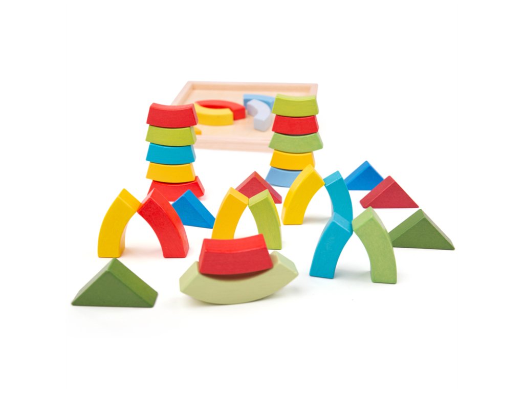 Tyto dřevěné tvary byly navrženy tak, aby zaujaly a nabídly dětem spoustu kreativních možností při hraní. Ideální pro hru s otevřeným koncem , neexistuje žádná kniha pravidel, jak s nimi hrát. Co uděláš? Most? Šikmou věž? Možnosti hraní jsou nekonečné! Tyto tvary pomáhají rozvíjet smyslové dovednosti. Vyrobeno z vysoce kvalitních a zodpovědně pocházejících materiálů. Vyhovuje současným evropským bezpečnostním normám. Hlavní vlastnosti: prakticky baleno v dřevěné základněnekonečné možnosti při hřerozvíjí smyslové dovednosti