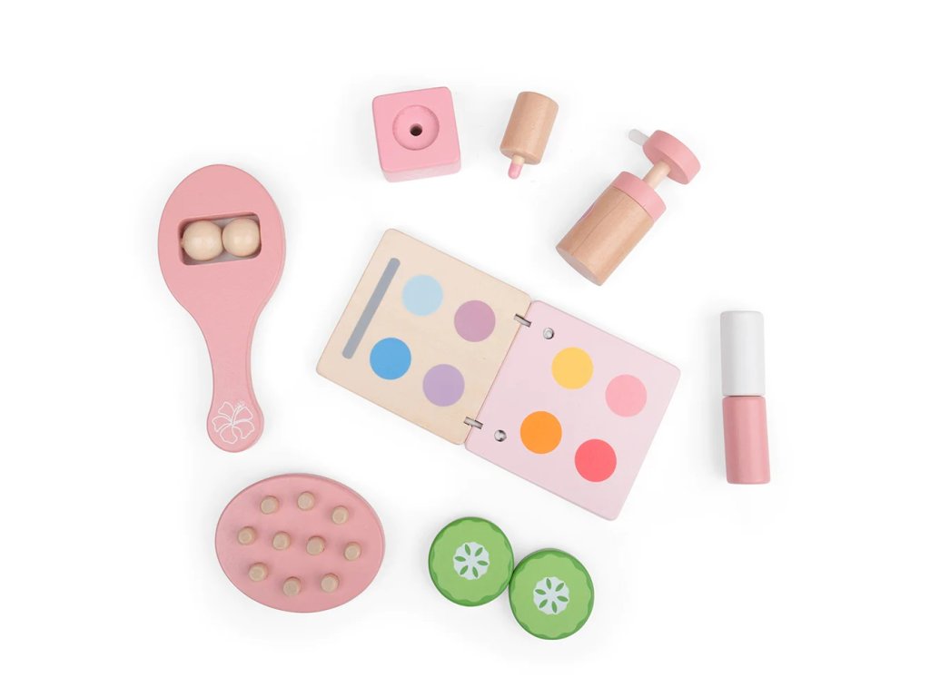 Bigjigs Toys Dřevěný kosmetický stolek růžový
