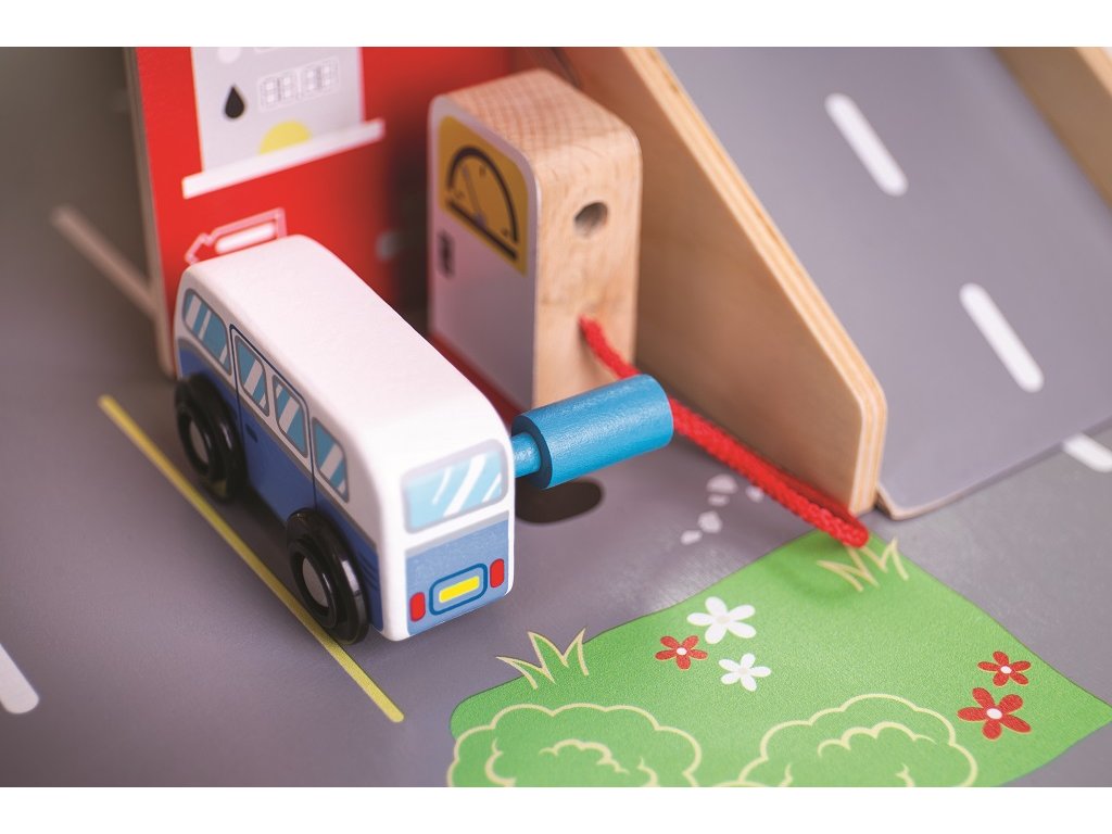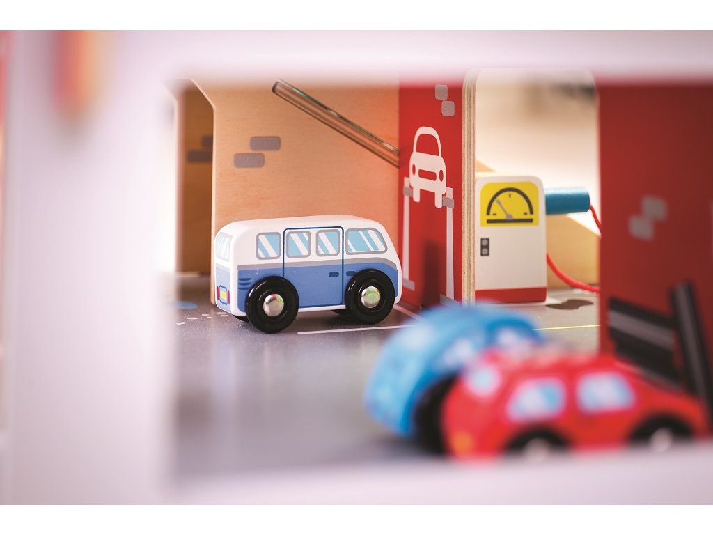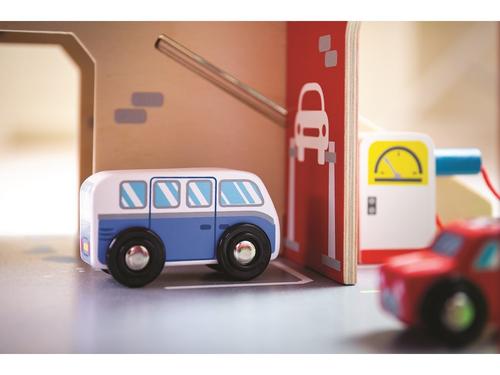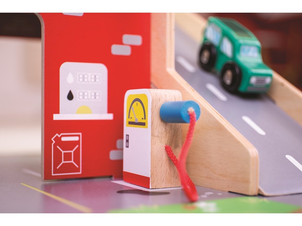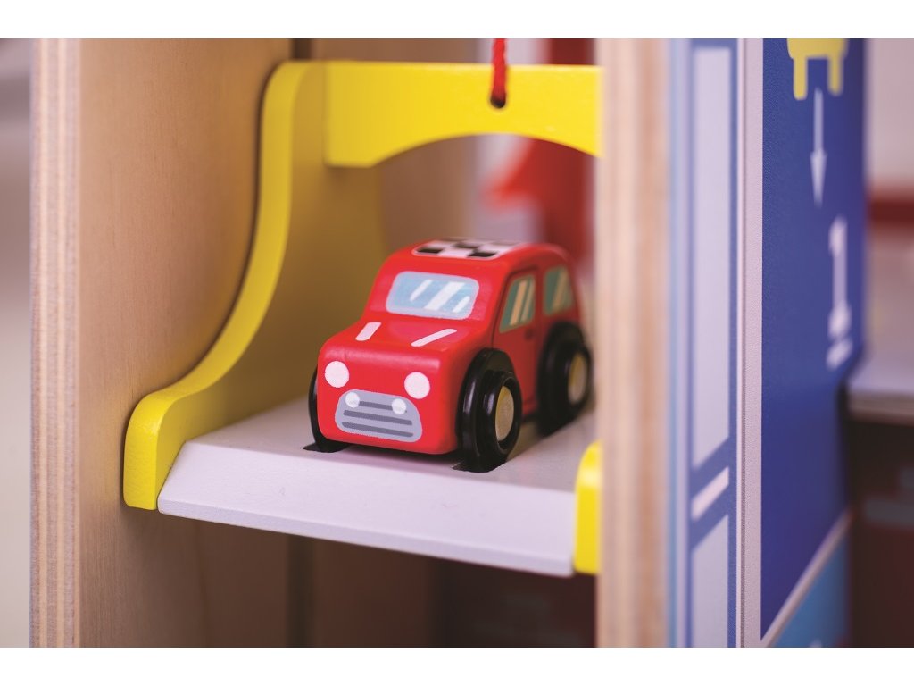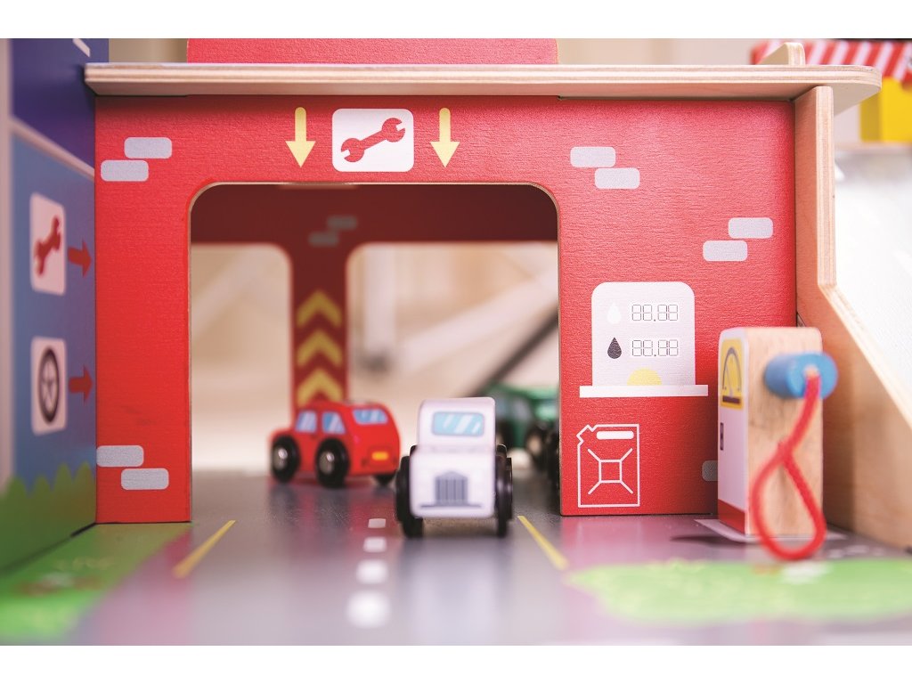 Děti si užijí hru plnou zábavy na každém ze tří pater garáže s parkovištěm. V přízemí mohou autem vjet na fungující výtah a poté vyjet až do druhého patra a zaparkovat. V přízemí děti najdou servis, myčku i pumpu. Z prvního patra mohou auta odjíždět za pomocí výtahu nebo po rampě, ale pozor, auta musí počkat na zvednutí závory! Nejvyšším bodem garáže je heliport. Tato garáž má prostě vše, co malý řidič potřebuje pro dopravení se z bodu A do bodu B. Podporuje kreativitu a představivost. Vyvíjí koordinaci ruka-oko, jemnou motoriku a zručnost. Možno doplnit autíčky Bigjigs Toys a Bigjigs Rail. Vyrobeno z kvalitních materiálů z odpovědných zdrojů.  Hlavní vlastnosti: 3 patra s parkovištěm a heliportemfunkční výtahservis, myčka i pumpa v přízemí
