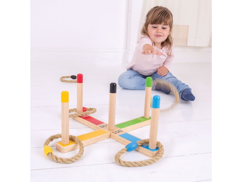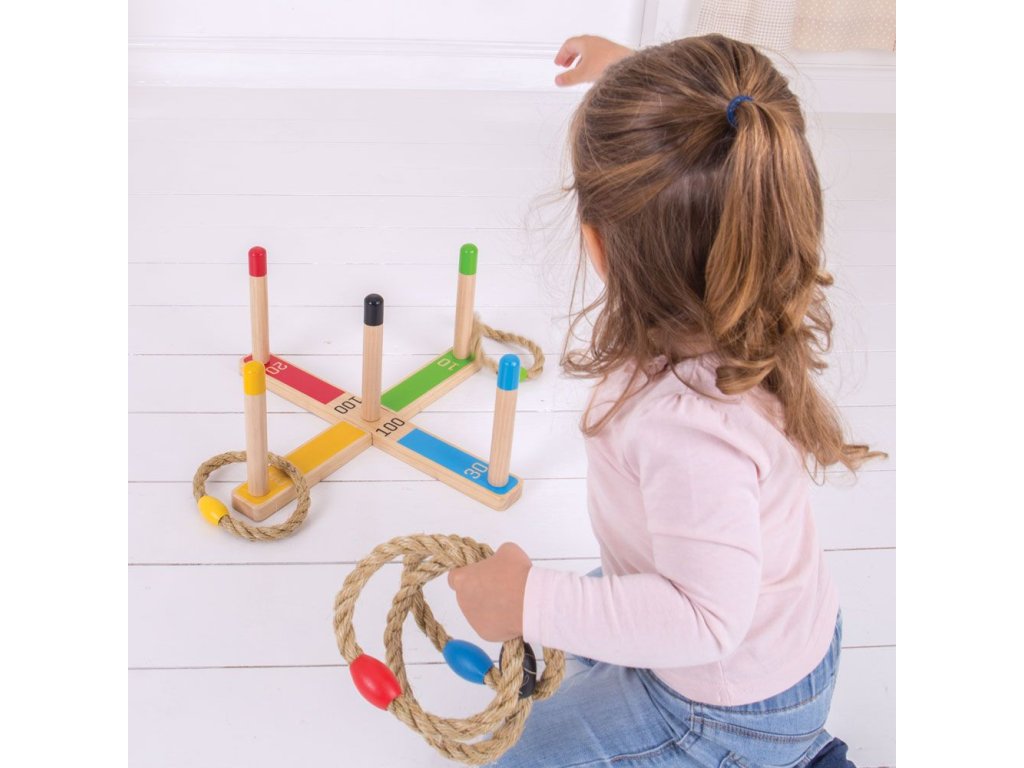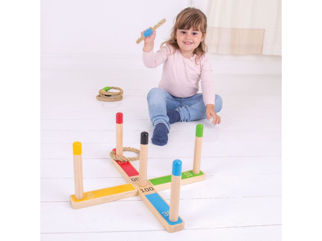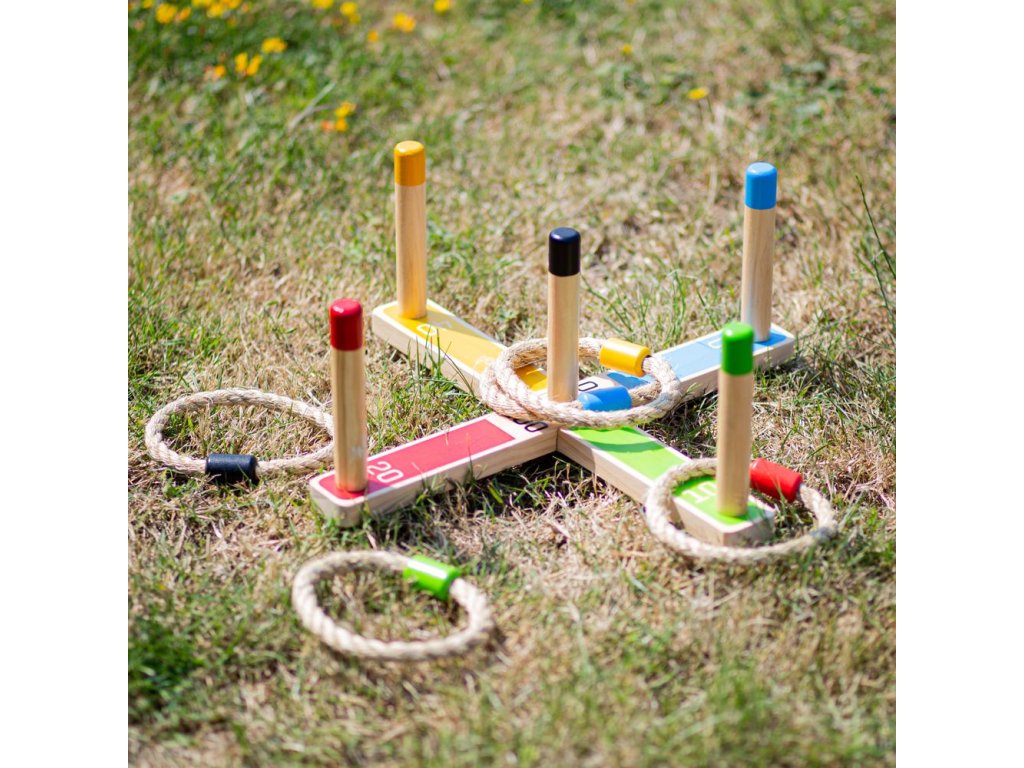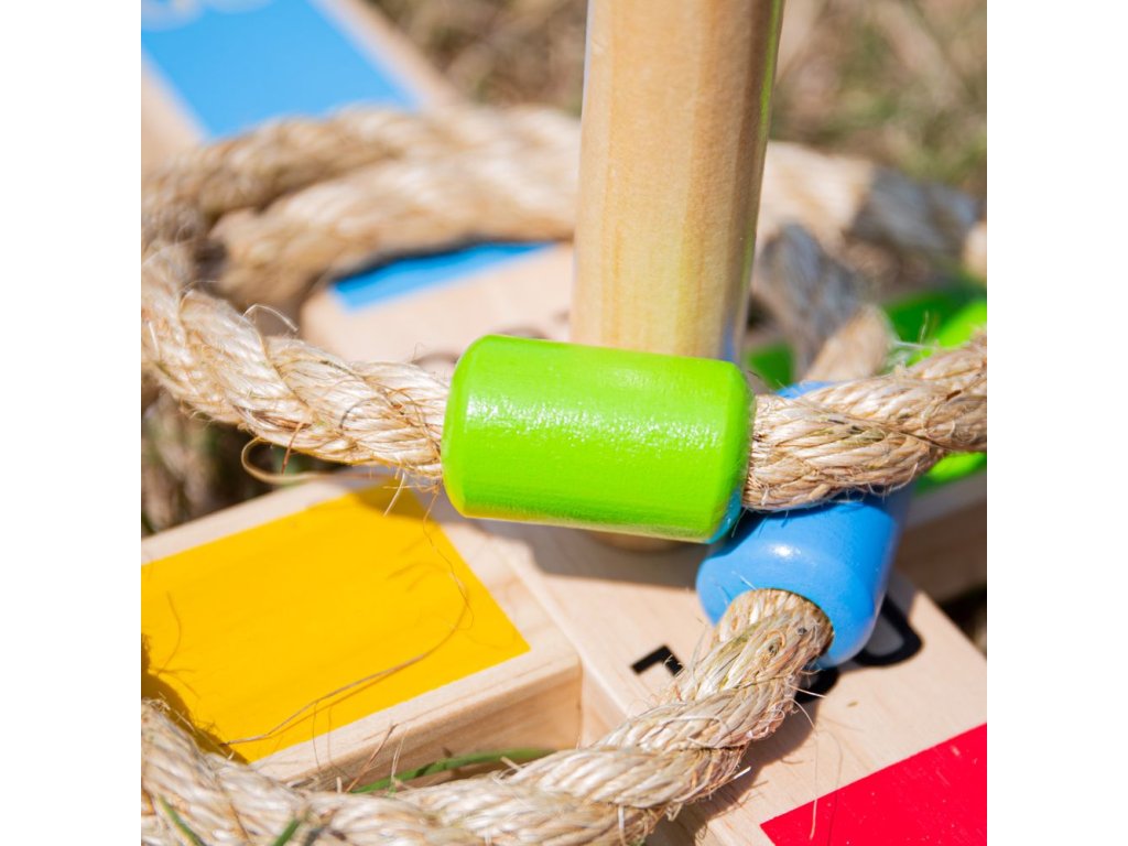 Tato klasická hra dovedností a přesnosti podpoří soutěživost v těch nejmenších, když se pokoušejí přehodit lana přes barevné tyče a dosáhnout tak nejvyššího skóre. Každé lano je barevně sladěné s jednou tyčí. Hrajte jednotlivě nebo s rodinou a přáteli, uvnitř i venku. Hlavní vlastnosti: pomáhá rozvíjet zručnost a koordinaci a zlepšuje matematické dovednostivyrobeno z vysoce kvalitních, zodpovědně dodávaných materiálůodpovídá současným evropským bezpečnostním normám