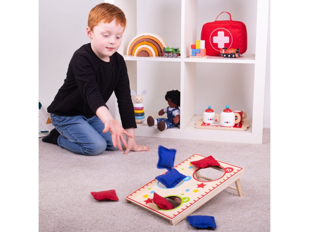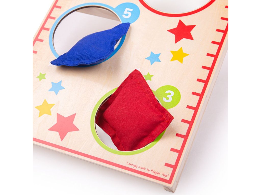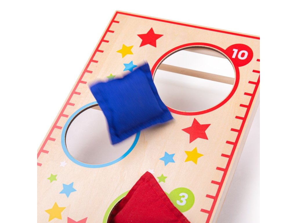 Zábavná klasická hra pro lidi všeho věku! Prohoďte polštářky otvory a získejte body. Hrajte samostatně nebo v týmech. V balení 6 polštářků a hrací plocha s bodováním. Vyrobeno z kvalitních materiálů ze zodpovědných zdrojů. Splňuje evropské bezpečnostní standardy. Vhodné od 3 let. Hlavní vlastnosti: hodnotící tabule, 6 vrhacích polštářkůodolné provedenívyrobeno s ohledy na udržitelnost