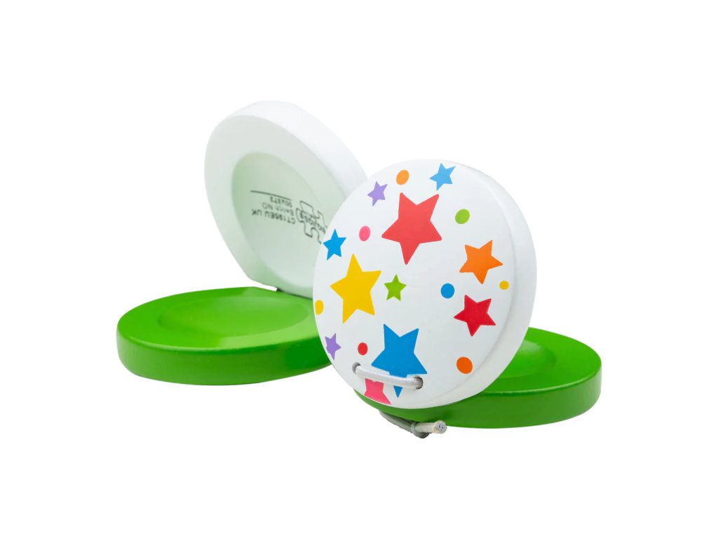 Cena je uvedena za 1 kus. Tyto dřevěné, barevné kastaněty s hvězdičkami jsou perfektní pro úvod do světa hudby. Děti se s nimi naučí zvuku a rytmu a kastaněty je také podpoří v kreativitě. Pomáhají rozvinout zručnost a koordinaci dětí. Vyrobeno z kvalitních materiálů z odpovědných zdrojů. Odpovídá evropské bezbečnostní normě. Hlavní vlastnosti: rozvíjí jemnou motoriku a kreativituhravý úvod do světa zvuku a rytmuvyrobeno ze dřeva a kovu