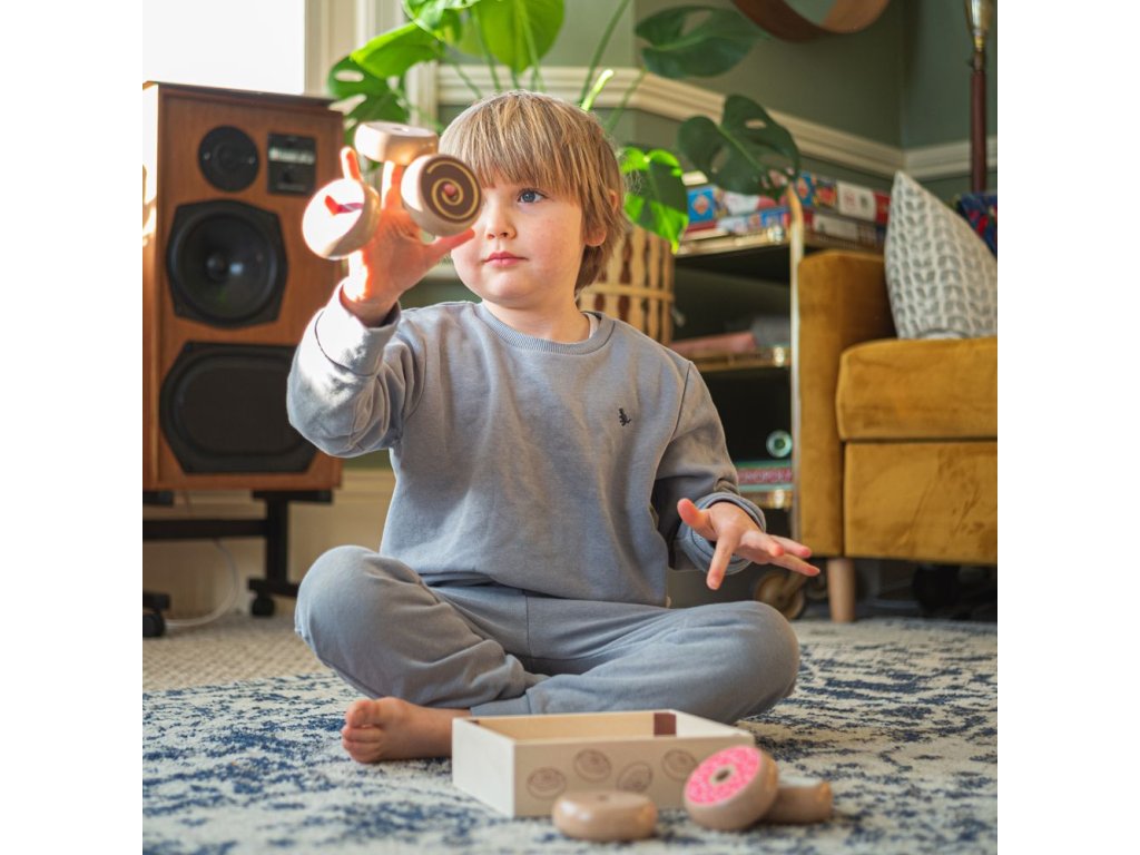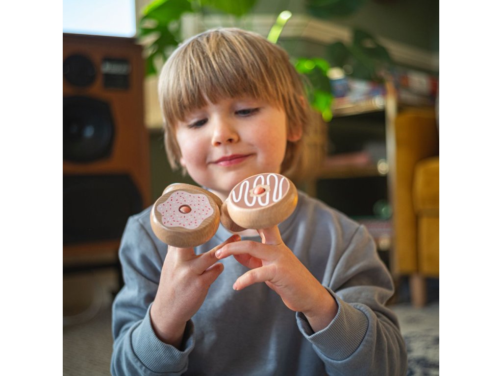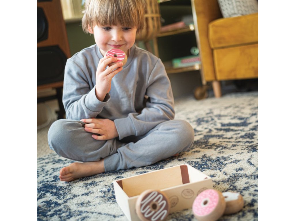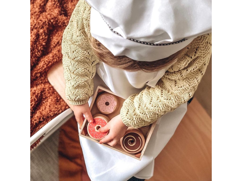 Dřevěný box s donuty, které vypadají realisticky a velmi chutně. Můžete je sníst sami nebo se podělit s ostatními! Ideální hračka, která děti seznámí s možností volby a se sdílením. Perfektní hračka pro čajové dýchánky nebo pikniky. Podporuje děti v kreativitě a hraní na role. Vyrobeno z kvalitních materiálů ze zodpovědných zdrojů. Splňuje evropské bezpečnostní standardy. Hlavní vlastnosti: krabička (bez víka) a 6 donutůodolné provedenívyrobeno s ohledy na udržitelnost